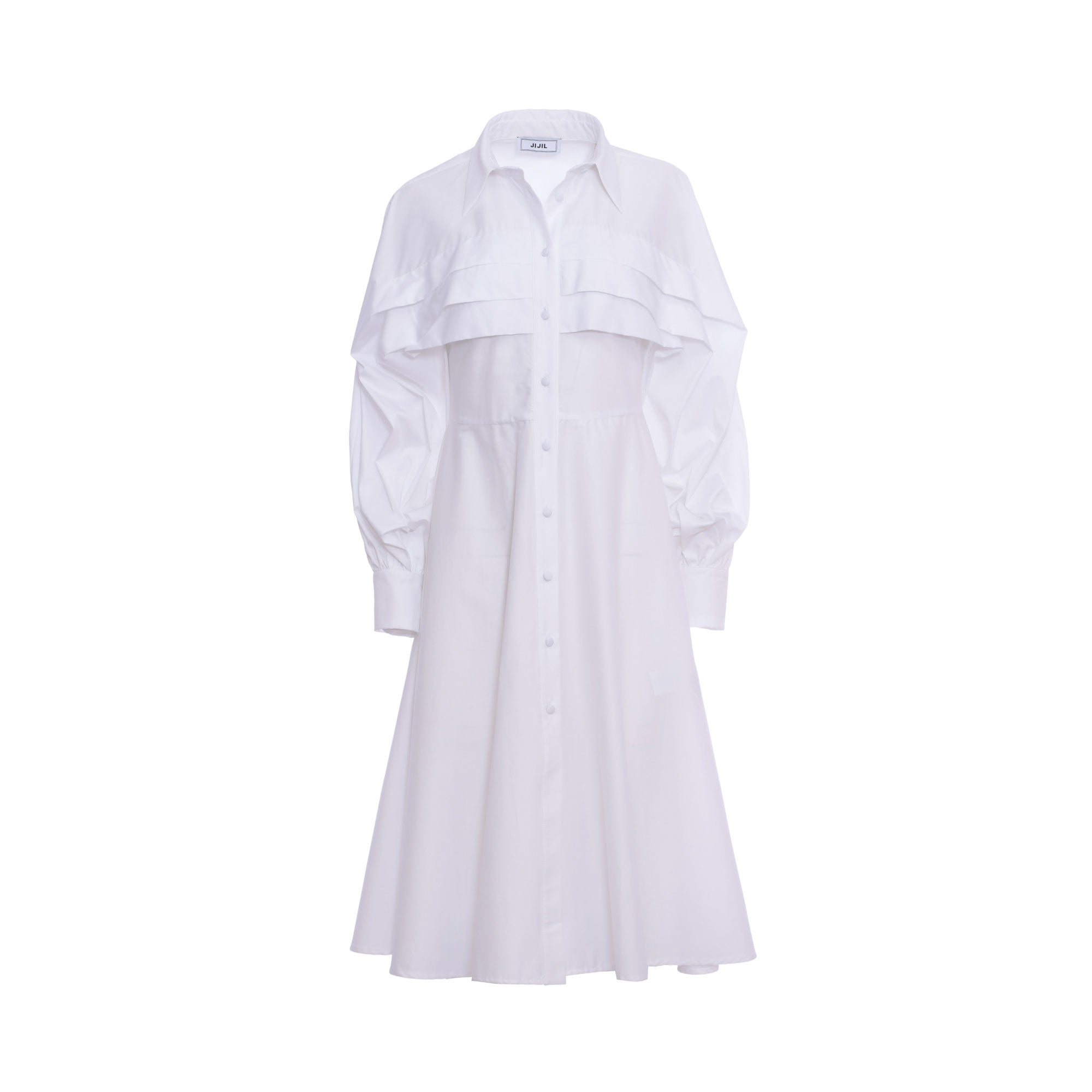 This Jijil Women's Shirt Dress is a beautiful choice for a night out or a special occasion. This dress features a collar neck and front button fastening for a sleek and flattering fit. The flared cut of the dress is elegant and modern. On the front is a beautiful design with long cuff sleeves for a touch of style. The hem is straight, creating an elegant look overall. The fabric is light weight for maximum comfort. Pair this dress with your favorite heels and a clutch bag for a chic and sophisticated ensemble. SPECIFICATIONS