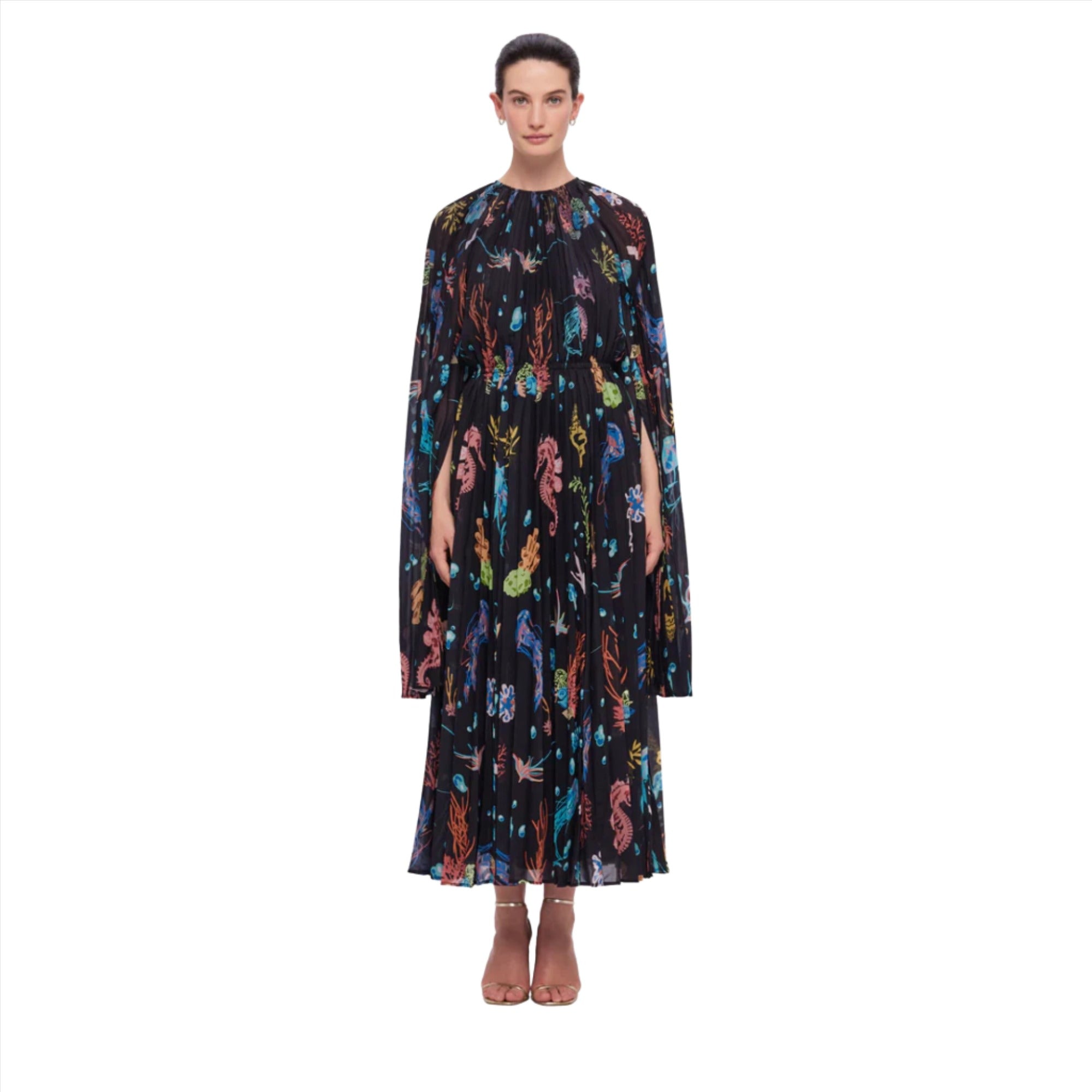 Leo Lin Women's Esme Bell Sleeve Midi Dress Twilight Print Black