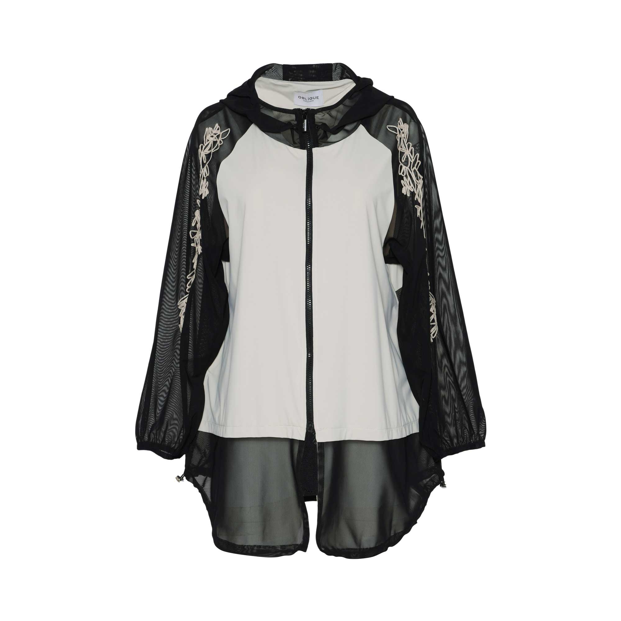 This Oblique Women's Beige & Black Blazer features long elasticated sleeves with mesh details, a round hemlines, and a front zip fastening. The stand-out detail of this blazer is the intricate thread embroidery, which appears on the sleeves, making this garment truly unique. The light beige and black combination creates a balanced and elegant look, while the long elasticated sleeves provide a comfortable fit and ensure ease of movement. The round hemlines create a more contemporary look and the front zip fastening provides convenience. Finally, the thread embroidery on the sleeves adds a special touch to this blazer and is sure to make you stand out from the crowd. Whether you are off to work or on your way to a special event, this Oblique Women's Beige & Black Blazer is sure to make you look your best. The comfortable fit, stylish embroidery, and timeless color combination is sure to turn heads and will make a great addition to your wardrobe. SPECIFICATIONS