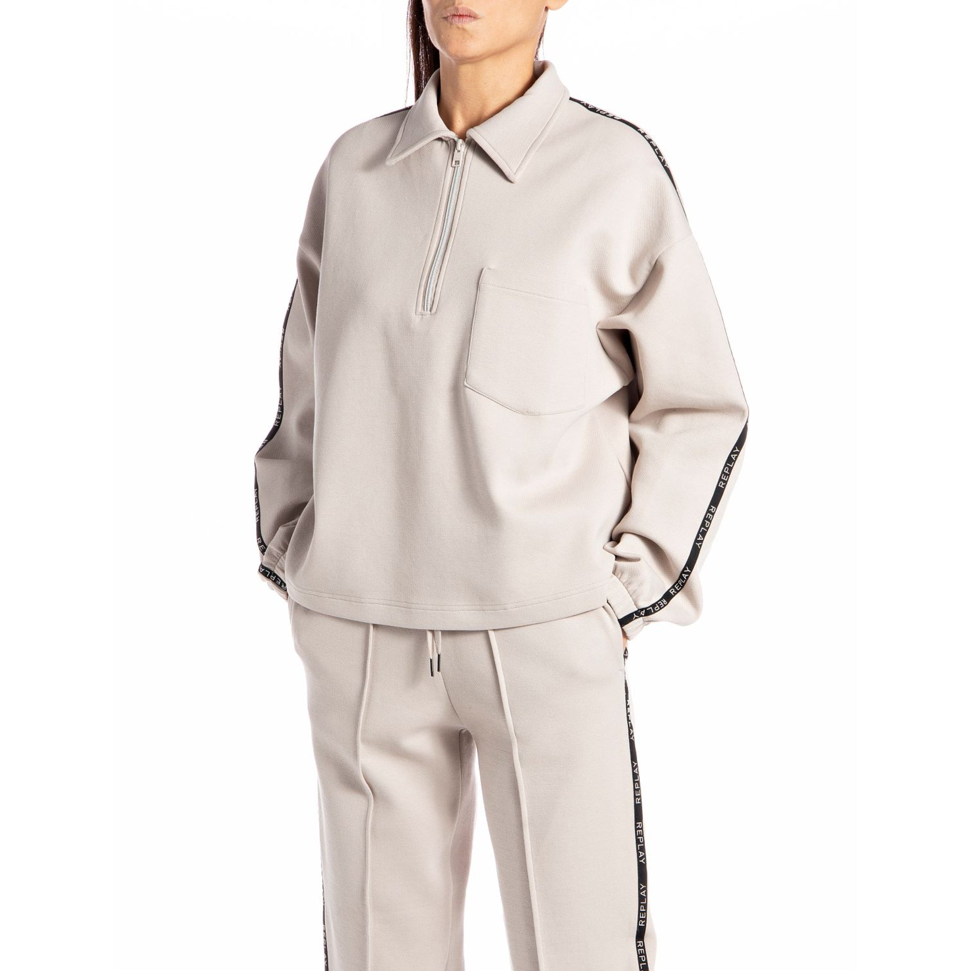 Replay Women's Essential Half Zipper Sweatshirt in Cotton Pique