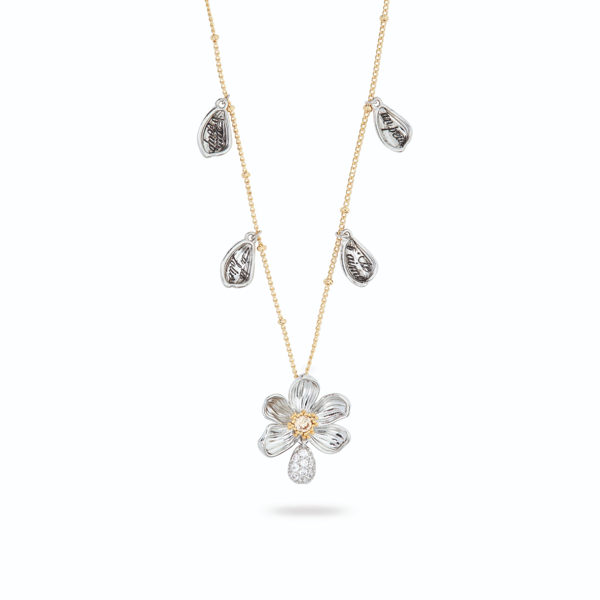 | Les Nereides Charm D'amour Necklace is a must-have accessory for every fashion-forward individual. This charming necklace from the Love Charms collection is beautifully crafted with a delicate daisy at its centre, surrounded by enchanting reversible petals. Each petal is intricately designed with the words 'je t'aime', 'un peu', 'beaucoup' and 'à la folie', symbolizing different levels of love. This unique feature allows you to playfully turn the petals and express your emotions through creative wordplays. The necklace exudes an air of elegance and romance, making it a perfect gift for your loved ones or even for yourself. The stunning gold finish adds a touch of sophistication to the necklace, making it suitable for all fashion styles. It is delicately crafted with high-quality materials, ensuring durability and longevity. Les Nereides Charm D'amour Necklace is a trendy and meaningful piece of jewelry that captures the essence of love and adds a touch of playfulness to your outfit. SPECIFICATIONS • Brand: Les Nereides • Gender: Women • Length (cm): 40 • Width (cm): 2 • Depth (cm): 0,5 • Extension (cm): 5 • Composition: Brass gilded with fine gold • Part of the Love Charms collection • Features a delicate daisy at the centre • Reversible petals with words 'je t'aime', 'un peu', 'beaucoup' and 'à la folie' • Allows for creative wordplays to express different levels of love • Perfect gift for loved ones or for yourself • Stunning gold finish adds sophistication About Brand Les Nereides is a luxury fashion and jewelry brand that was founded in 1980 by brother and sister duo, Enzo and Pascale Amaddeo. The brand is known for its whimsical and fantastical designs, drawing inspiration from fairy tales, literature, and nature. Les Nereides' signature aesthetic is a delicate and romantic blend of vintage and modern elements, featuring hand-painted enamel, intricate beading, and fine details. |