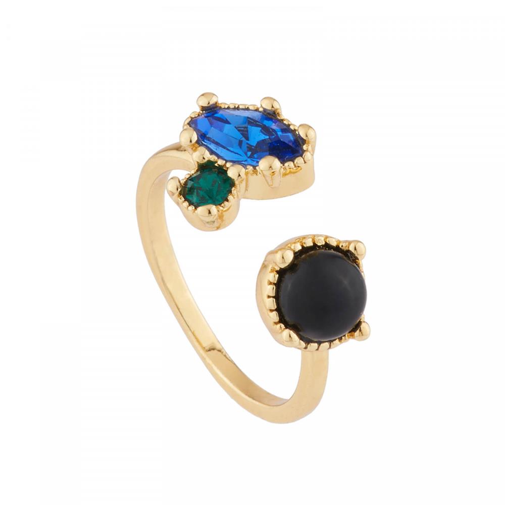 أنيقة وخالية من الرسوم البيانية ، تظهر لك هذه الحلقة أنا وأنا ازدواجية في الألوان: الجزع الأسود يجلب العمق إلى هذا الخلق ويقارن أحجار الراين الخضراء والخضراء. هذه القطعة من المجوهرات مصنوعة من النحاس الأصفر المطلي بالذهب عيار 18 قيراط.