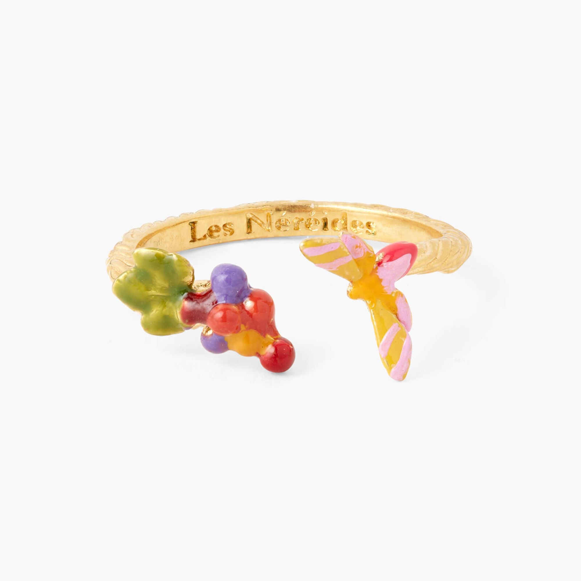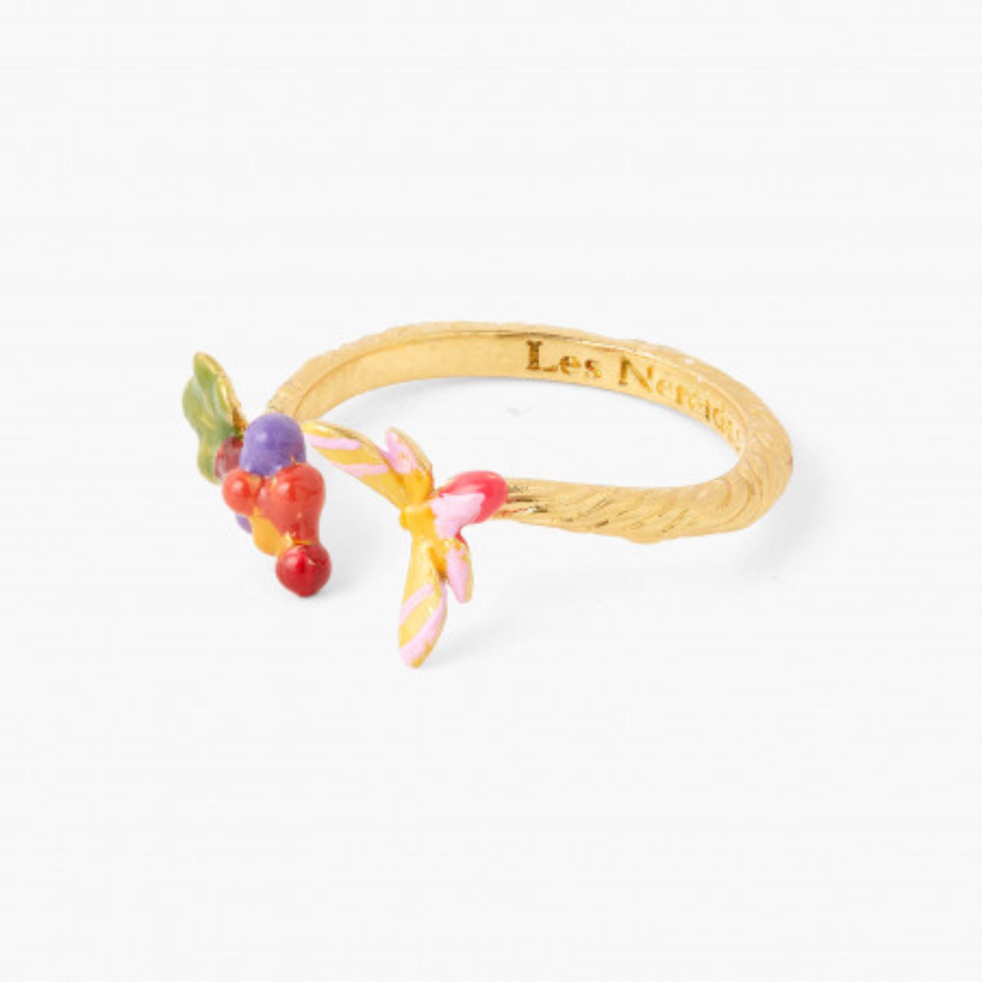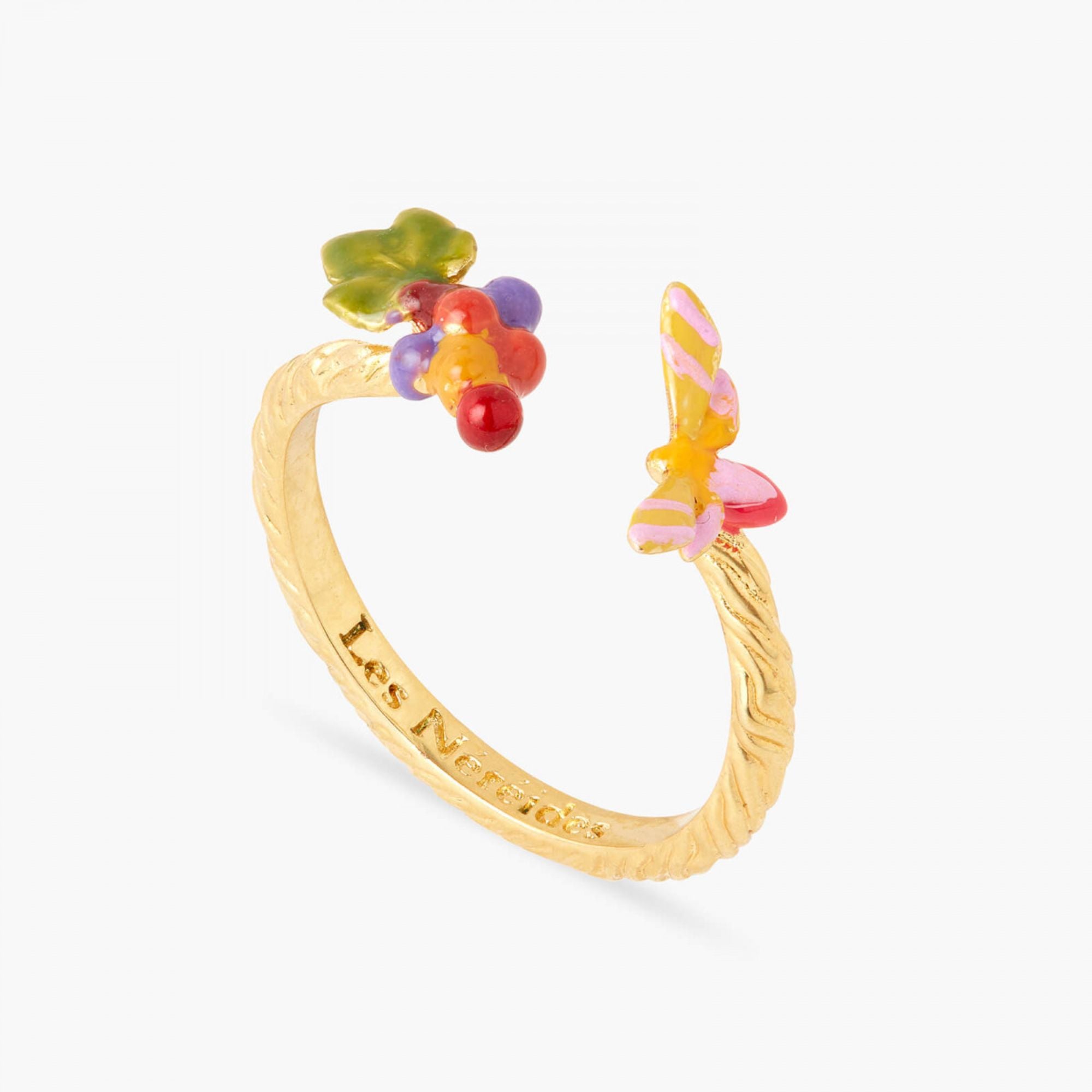 LES NEREIDES Bunch Of Grapes And Vine Butterfly Adjustable Ring