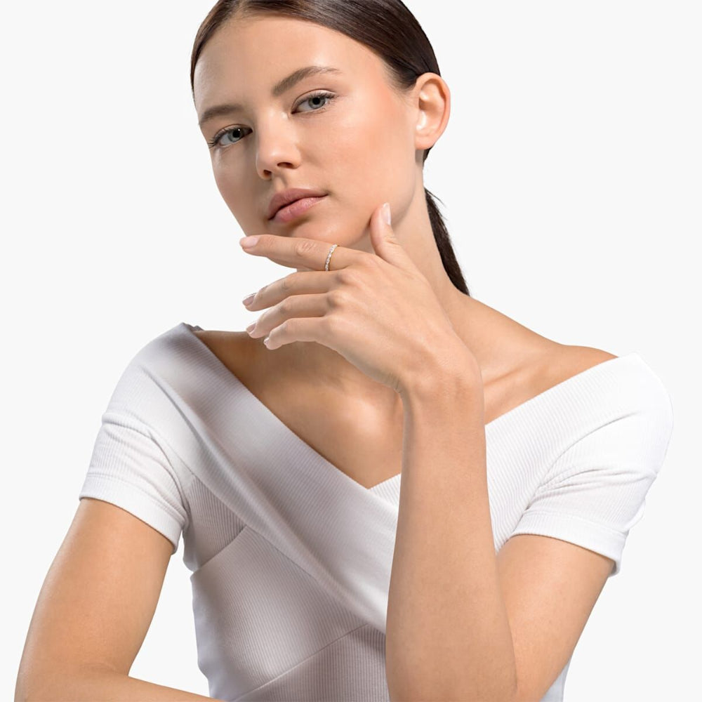خاتم سواروفسكي الساحر هذا هو مزيج رائع من السحر الأنثوي والأسلوب الحديث. تكتمل الأحجار البيضاء البراقة بطلاء ذهبي اللون للحلقة. مثالية لإضفاء الحيوية على ملابس العمل اليومية ، وستكون هدية رائعة لأي مناسبة.