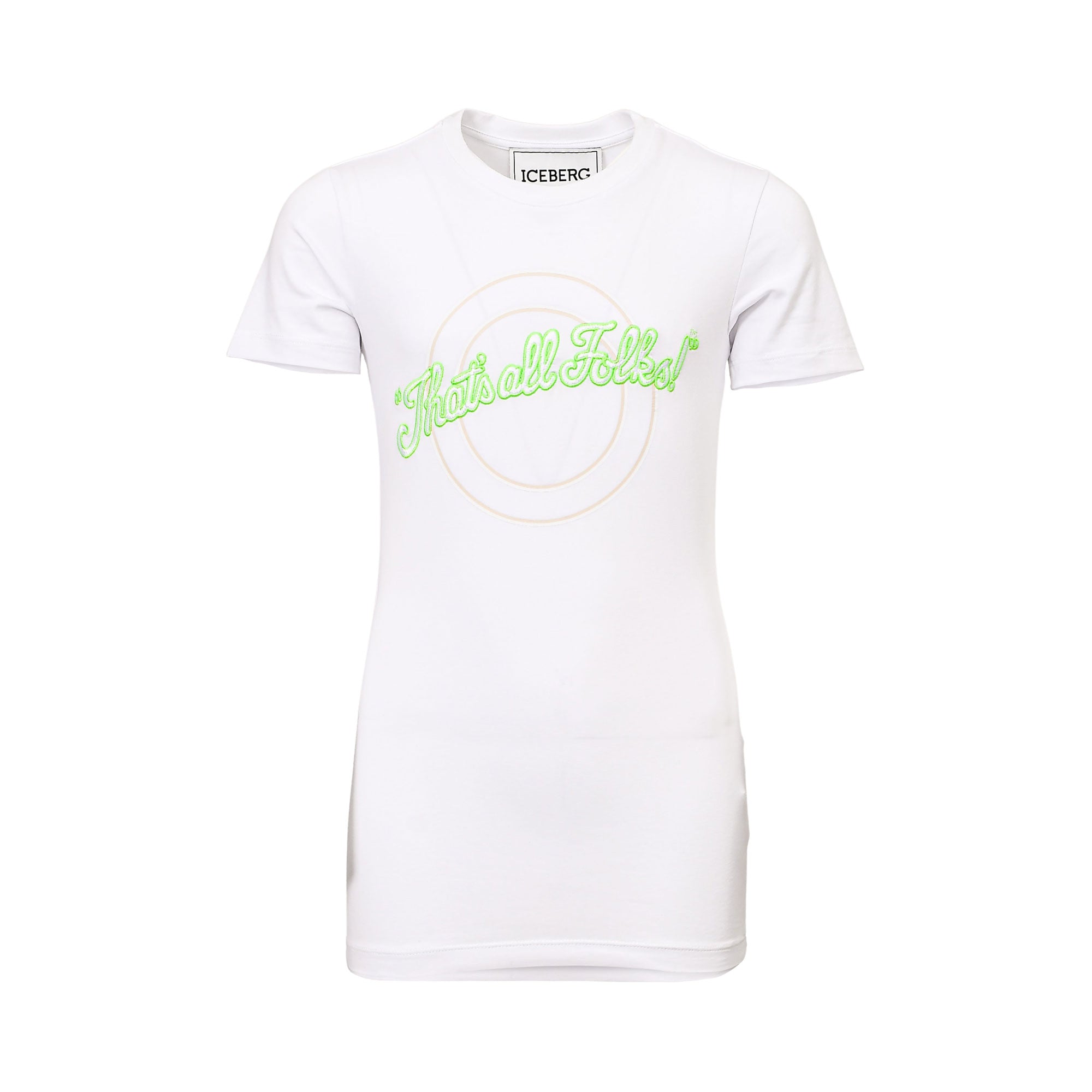 Iceberg Women's White Crew Neck T-Shirt with "That's all Folks!" Graphic
