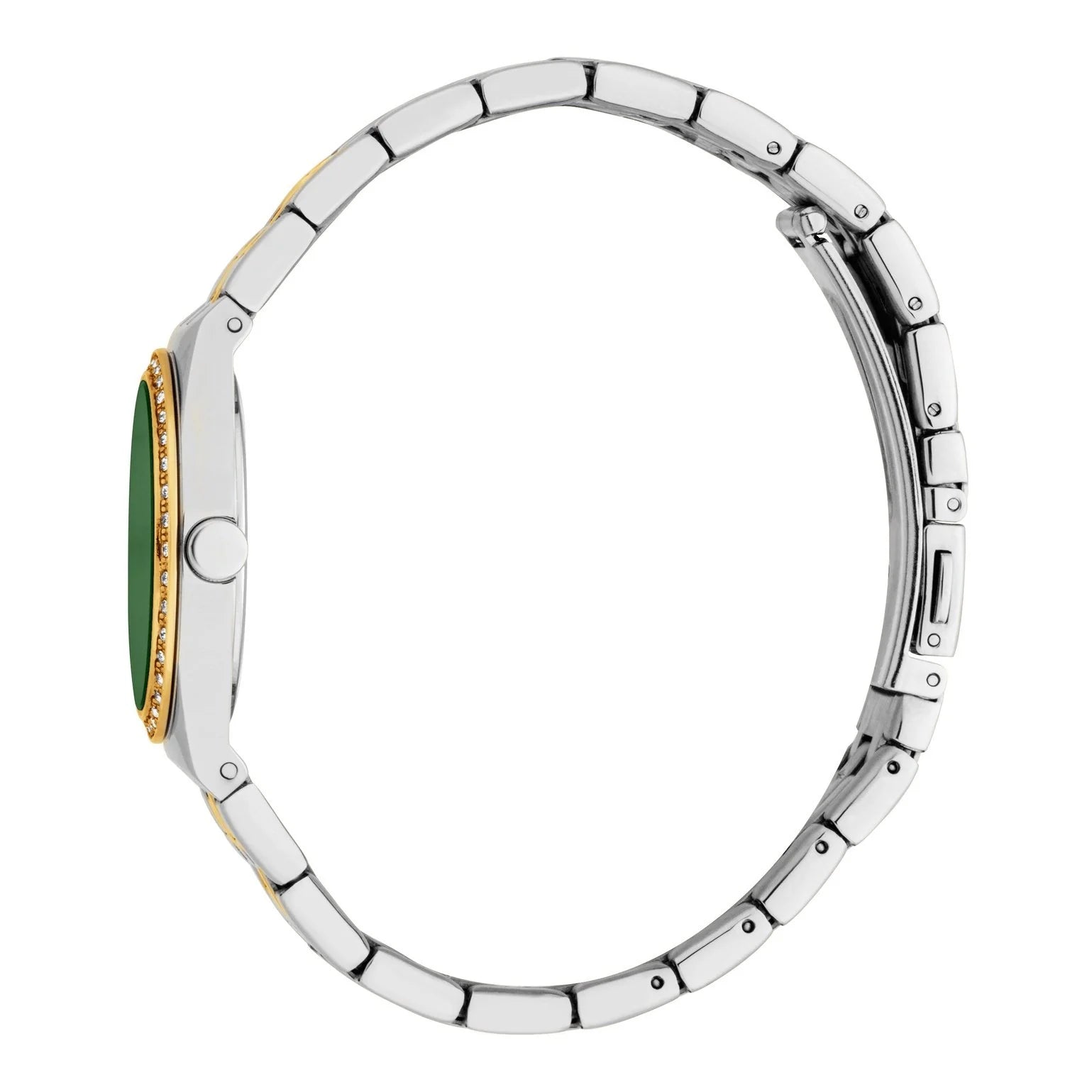 Esprit ladies Green Dial Two-Tone Stainless Steel Watch with Crystal-Accented Bezel,