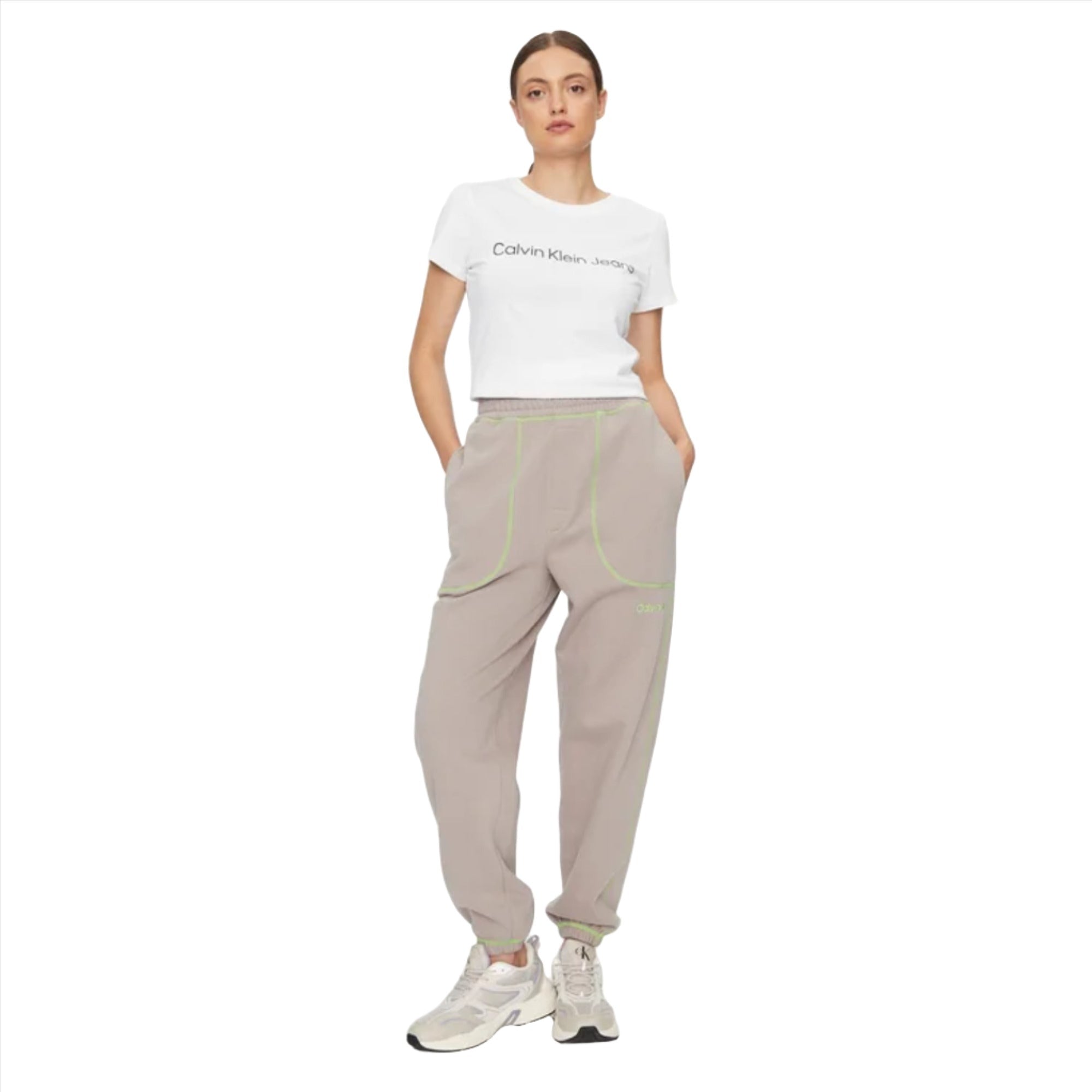- Jogger pants in elastic cotton fabric with calvin klein signature elastic waistband and rib knit cuffs.