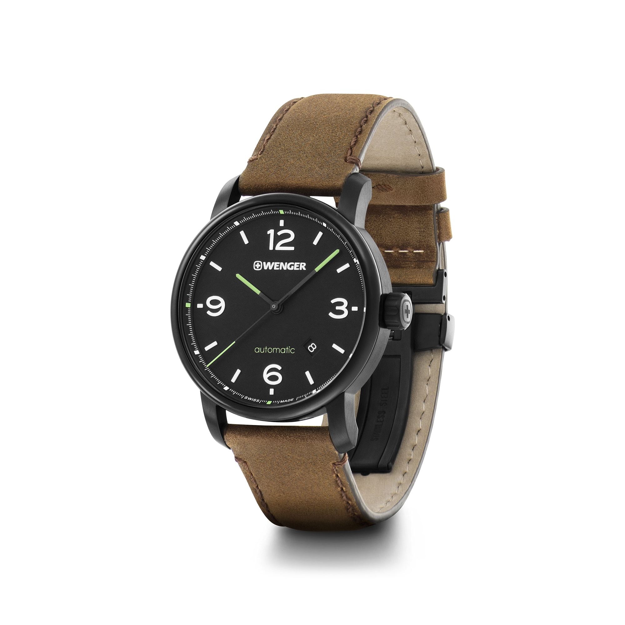 Wenger Urban Metropolitan Automatic 42 Black Dial Brown Strap Men's Watch
