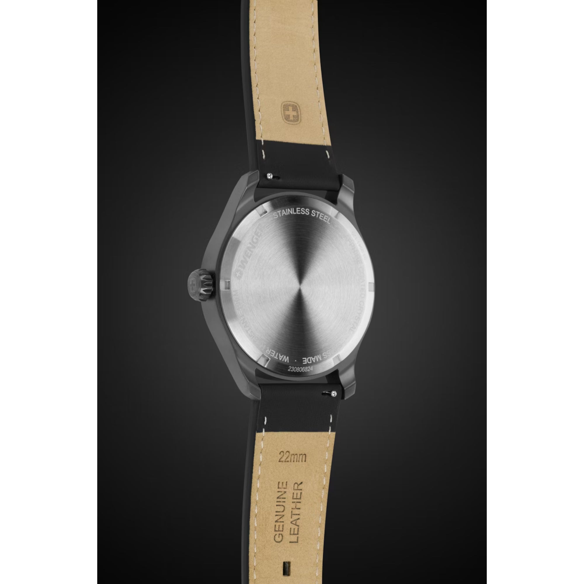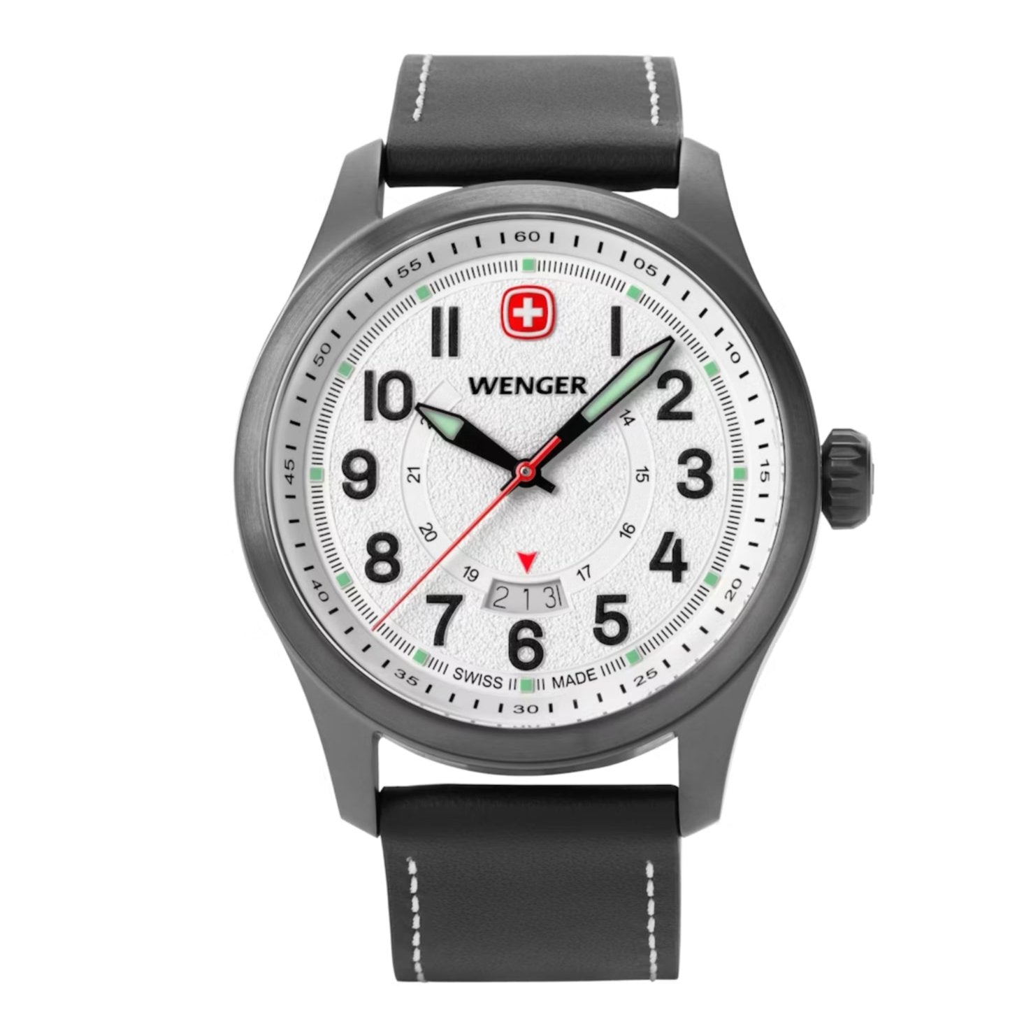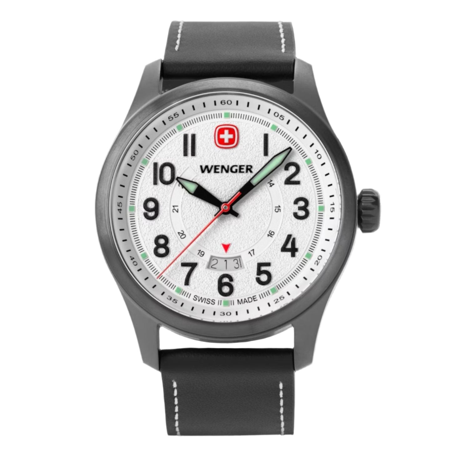 • Super-Luminova® coated numerals, hands, hour markers and Wenger cross, plus a Swiss-red second hand, ensure readability in any situation