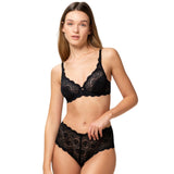 | Triumph Amourette Black is a beautifully crafted bra that offers both style and support. Its semi-transparent cups are made of stretch lace, providing a soft and comfortable fit without the need for padding. The cups are also lightweight, but thanks to the stable 3D shaper wires, they still offer excellent support. The delicate tulle cups are adorned with exquisite floral embroidery, adding a touch of elegance to the bra. Additionally, the delicate lace trim on the straps and sides adds to the overall feminine look of the bra. The straps are also adjustable, allowing for a customizable fit, while the narrow design adds to the bra's delicate and intricate appeal. Triumph Amourette Black is a sophisticated and comfortable bra that combines delicate details with reliable support. SPECIFICATIONS • Brand: Triumph • Gender: Women • Softly supportive semi-transparent cups in stretch lace, unpadded • Lightweight, yet stable 3D shaper wires for ultimate support • Exquisite floral embroidery on the delicate tulle cups • Delicate lace trim on straps and sides • Narrow adjustable straps • Hook-and-eye fastener for optimum support, three width adjustments • With small peephole and rose on narrow cradle • Washing Instructions: Hand wash • Do not bleach • Do not tumble dry • Do not Dry clean About Brand Triumph is a well-known international brand that specializes in lingerie and intimate apparel. The brand was founded in Germany in 1886 and has since become one of the leading lingerie companies in the world. Triumph offers a wide range of lingerie, including bras, panties, shapewear, and loungewear, in various sizes, styles, and designs. The brand is known for its high-quality materials, comfortable fits, and trendy designs that cater to women of all shapes and sizes. |