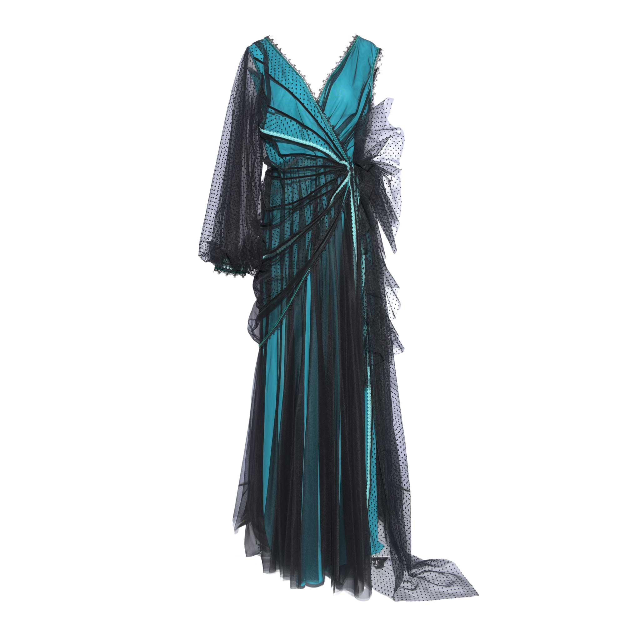 Supria Munjal Dynasty Green and Black Long Tulle Dress