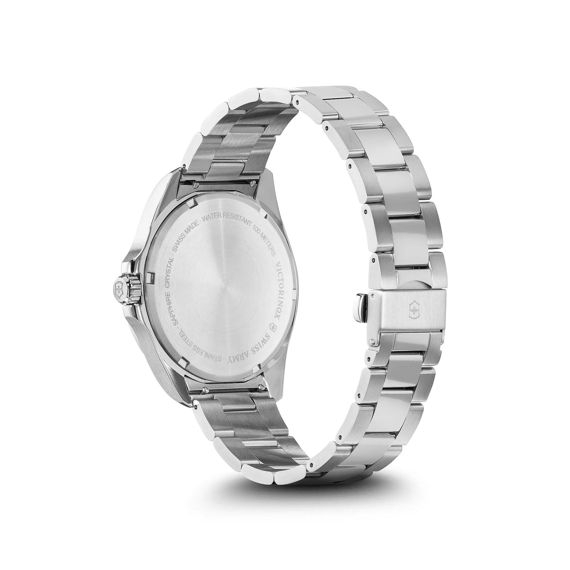 • Features iconic red second hand with Swiss Army knife-shaped counterweight, plus red cross and shield on dial
