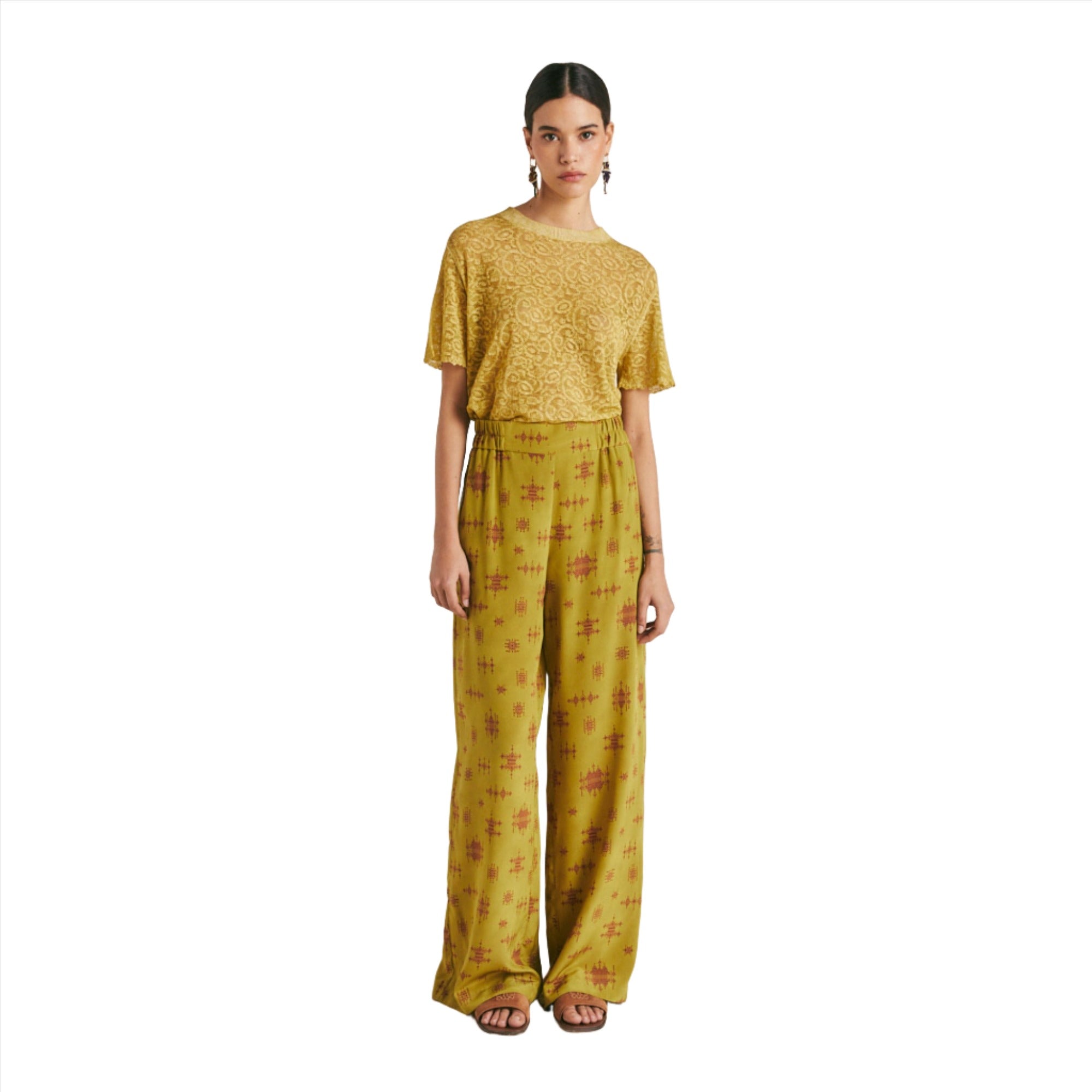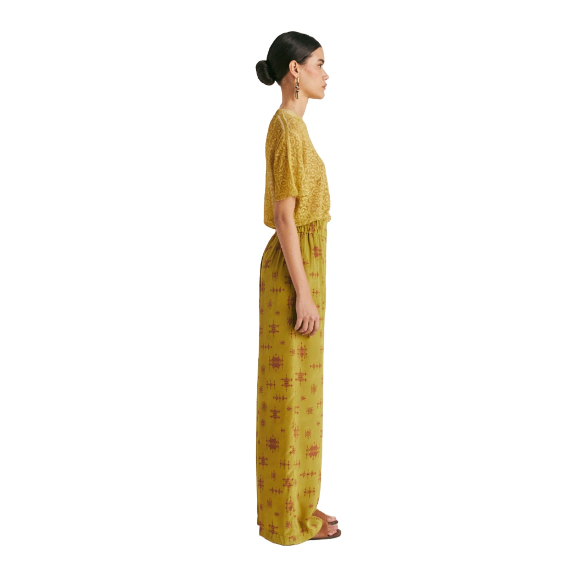 Momoni Baccarat Ladies Lime/Wine Pant In Crepe De Chine