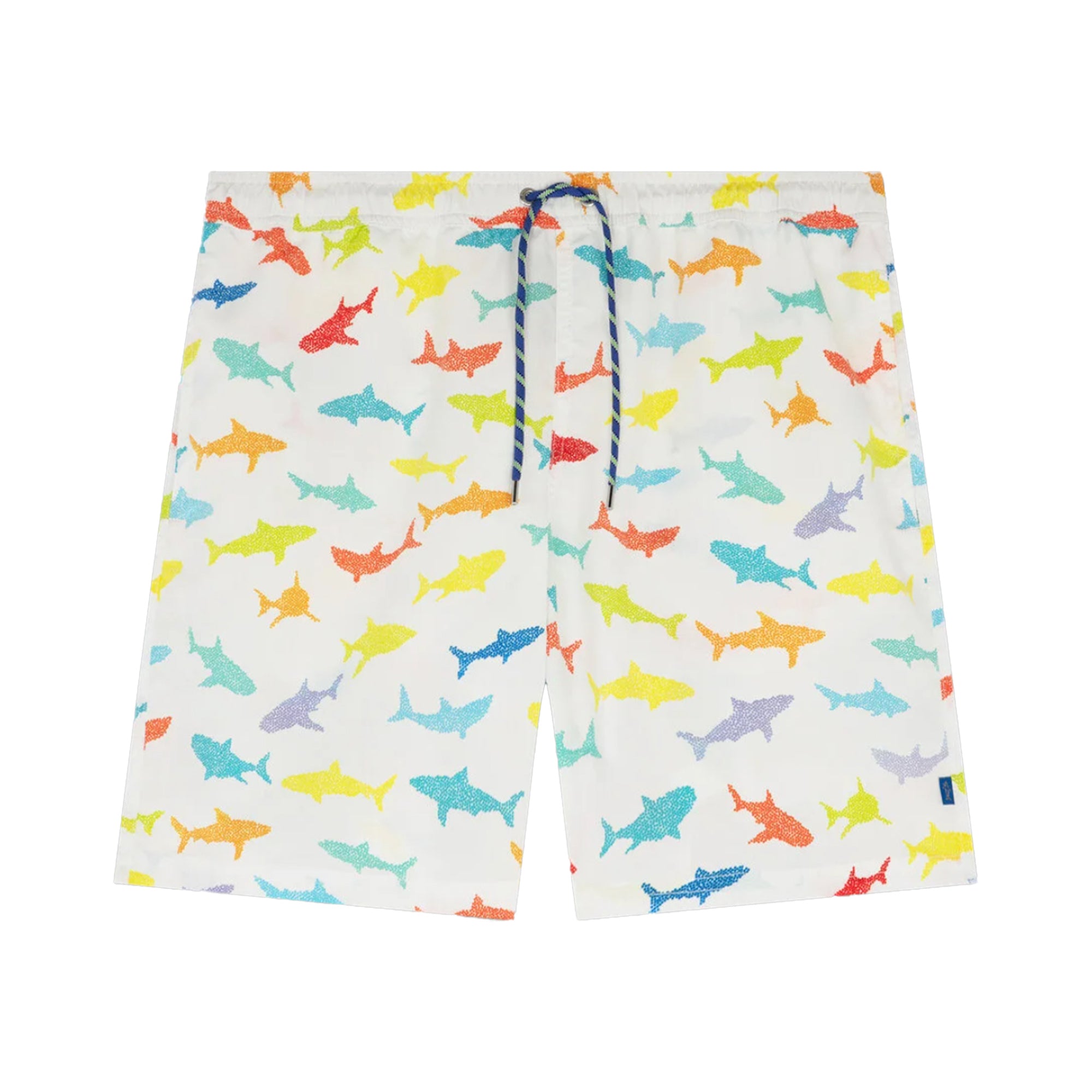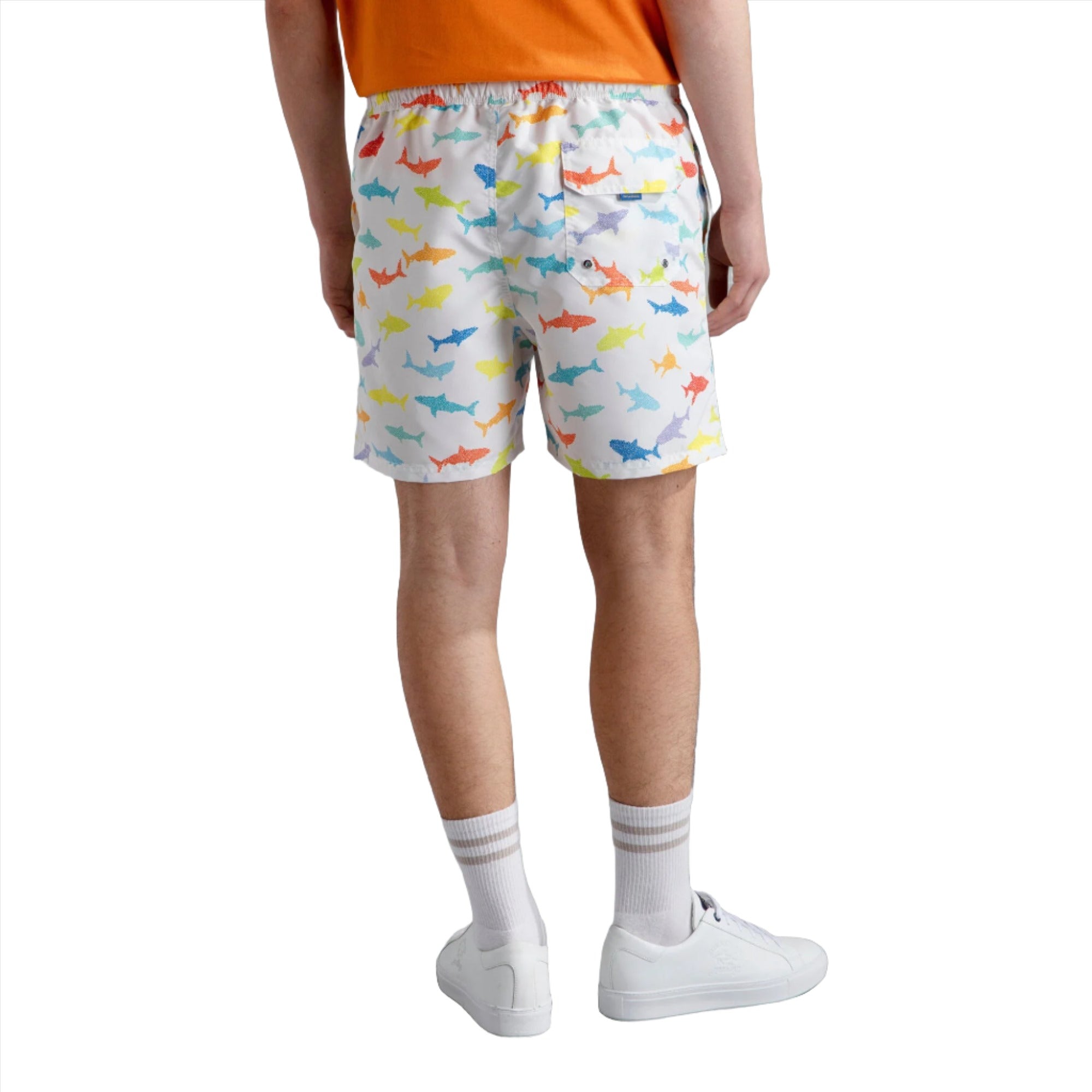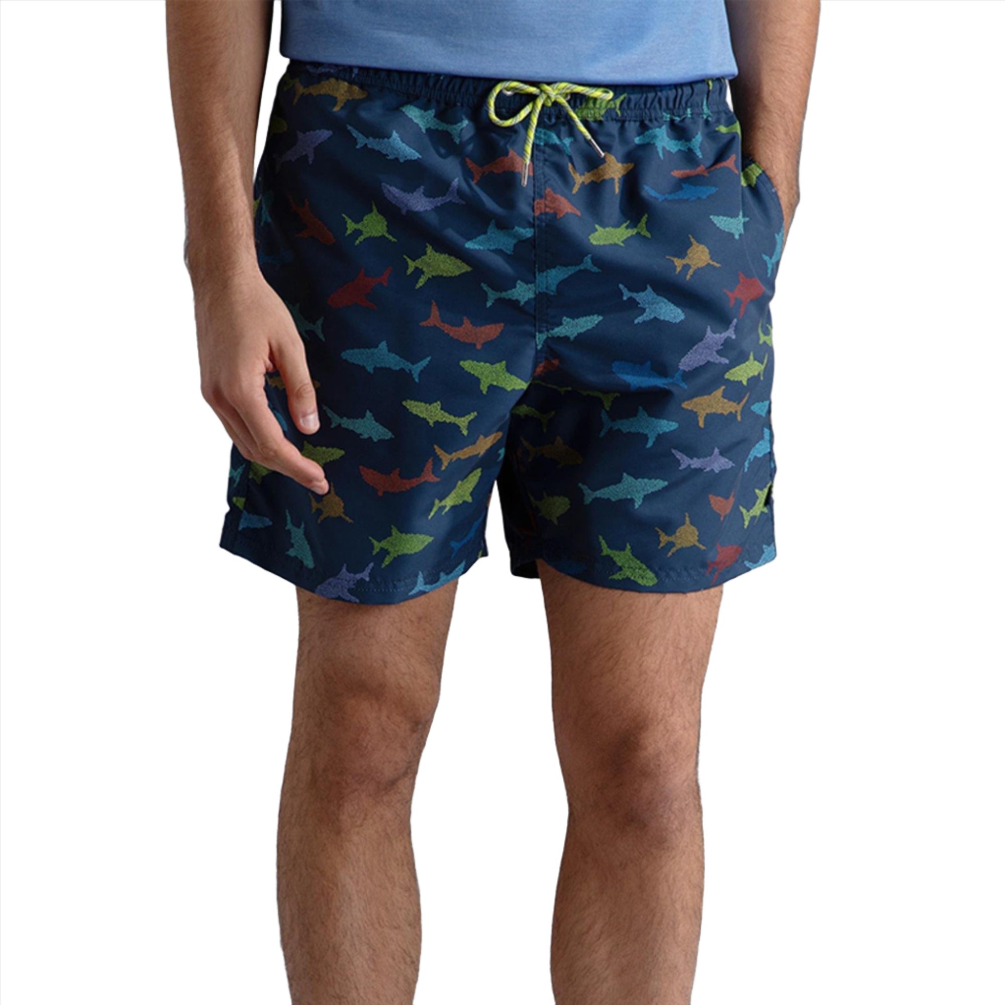 - Regular fit men's swim shorts featuring an elasticated drawstring waist, side pockets and one back pocket with velcro. (Composition: 100% Polyester)