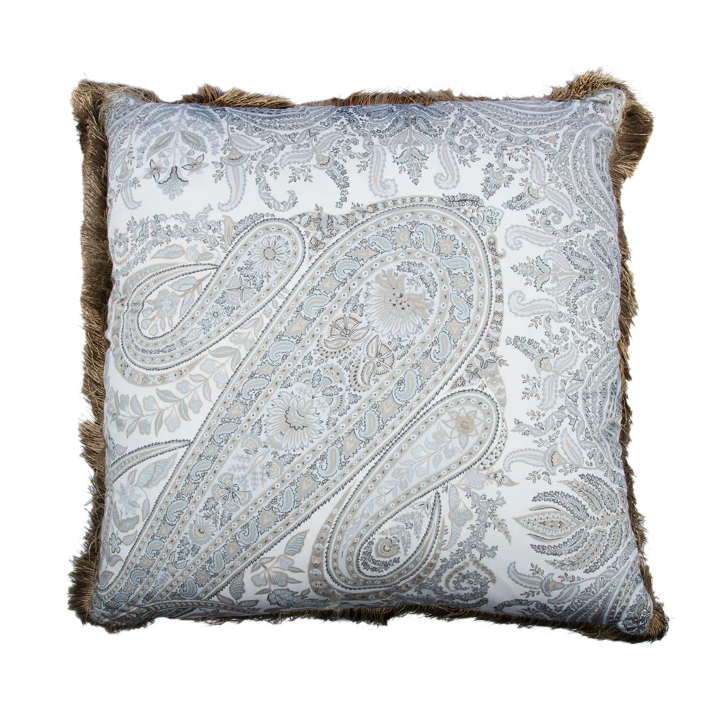 There's something unique and luxurious about the Etro Home Cushion With Passementerie 60x60 Cm Grey. This high-end cushion is perfect for adding a stunning touch to any living space. The fabric is a soft and luxurious silk twill featuring a beautiful paisley pattern. What truly makes this cushion stand out is its intricate passementerie border. This charming border is made up of intricate fringe details that become even more beautiful up close. Additionally, the 60x60 cm size offers a generous and comfortable surface to rest on. The muted grey color is neutral and versatile, making it a great addition to any room. The cushion is also filled with a feather and down stuffing that maximizes comfort without sacrificing aesthetics. The perfect blend of form and function, the Etro Home cushion will give your home or office a sophisticated and inviting atmosphere. SPECIFICATIONS
