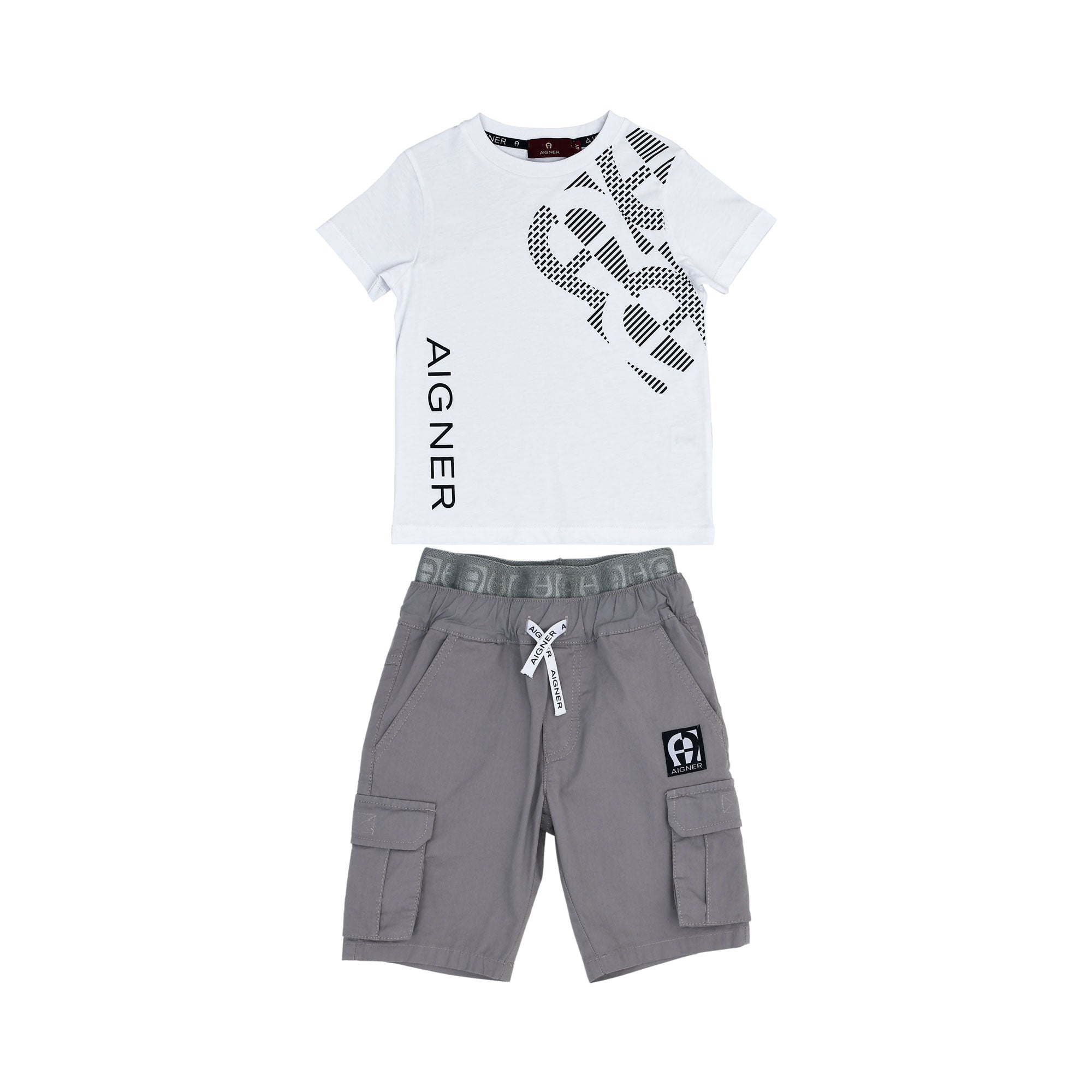 Aigner Kids Boy's White & Grey Set of T-Shirt & Bermuda