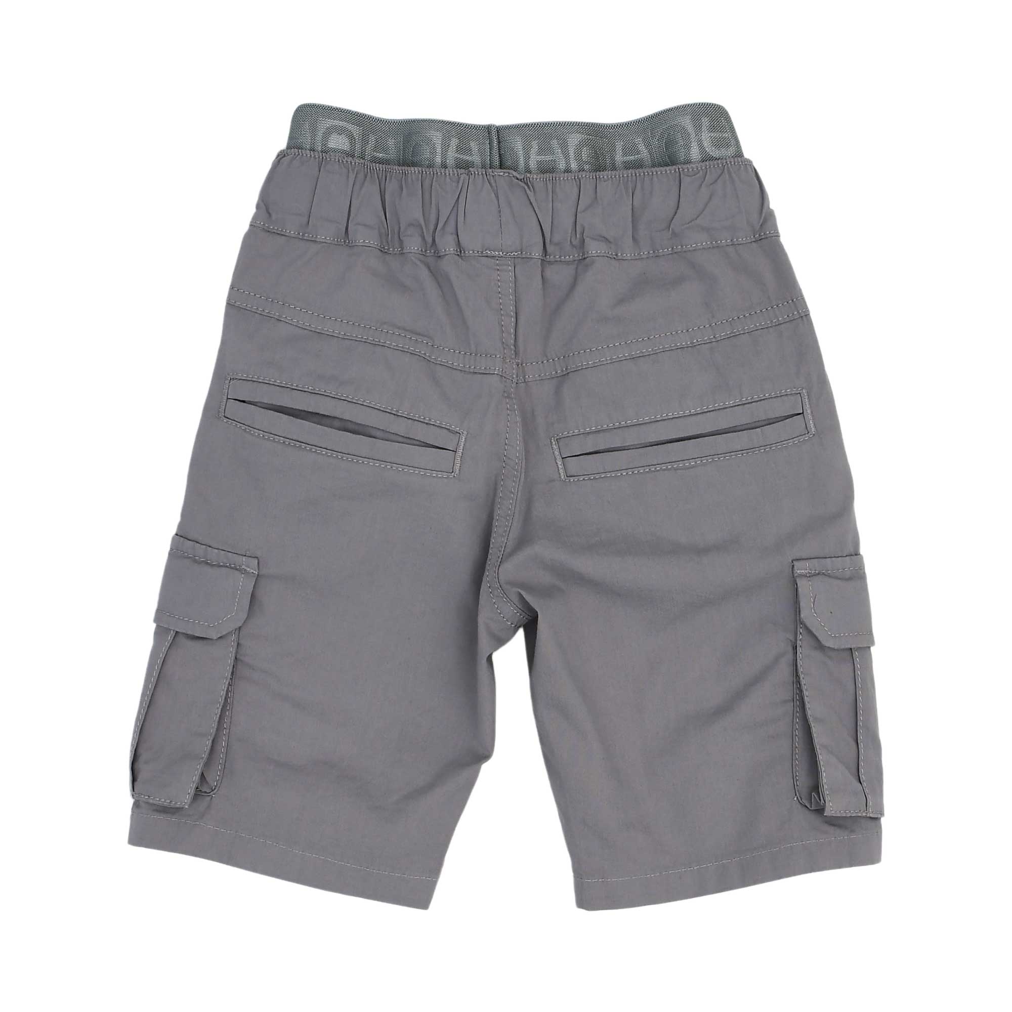 • Grey Bermuda shorts have an elasticated waistband with a drawstring for adjustable fit