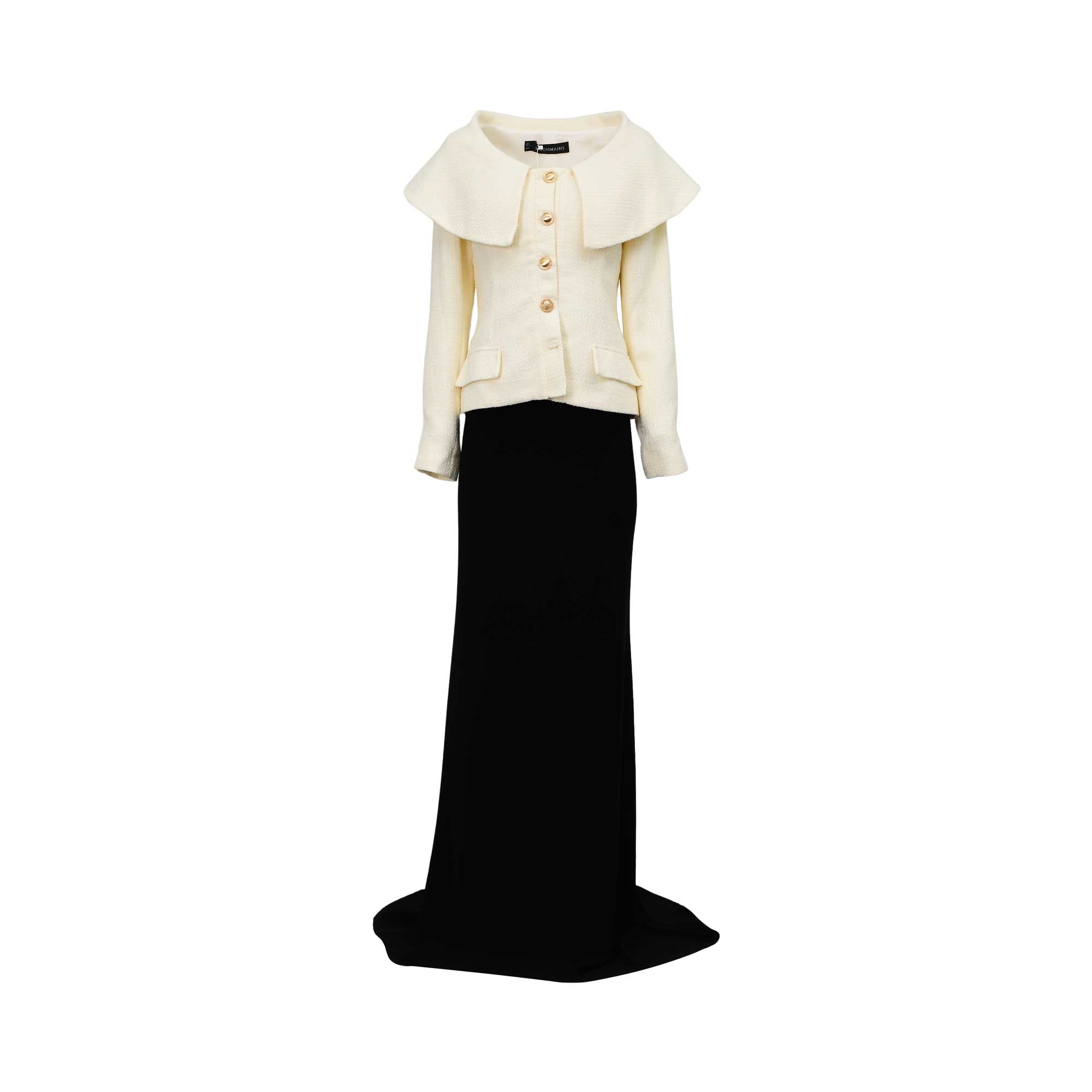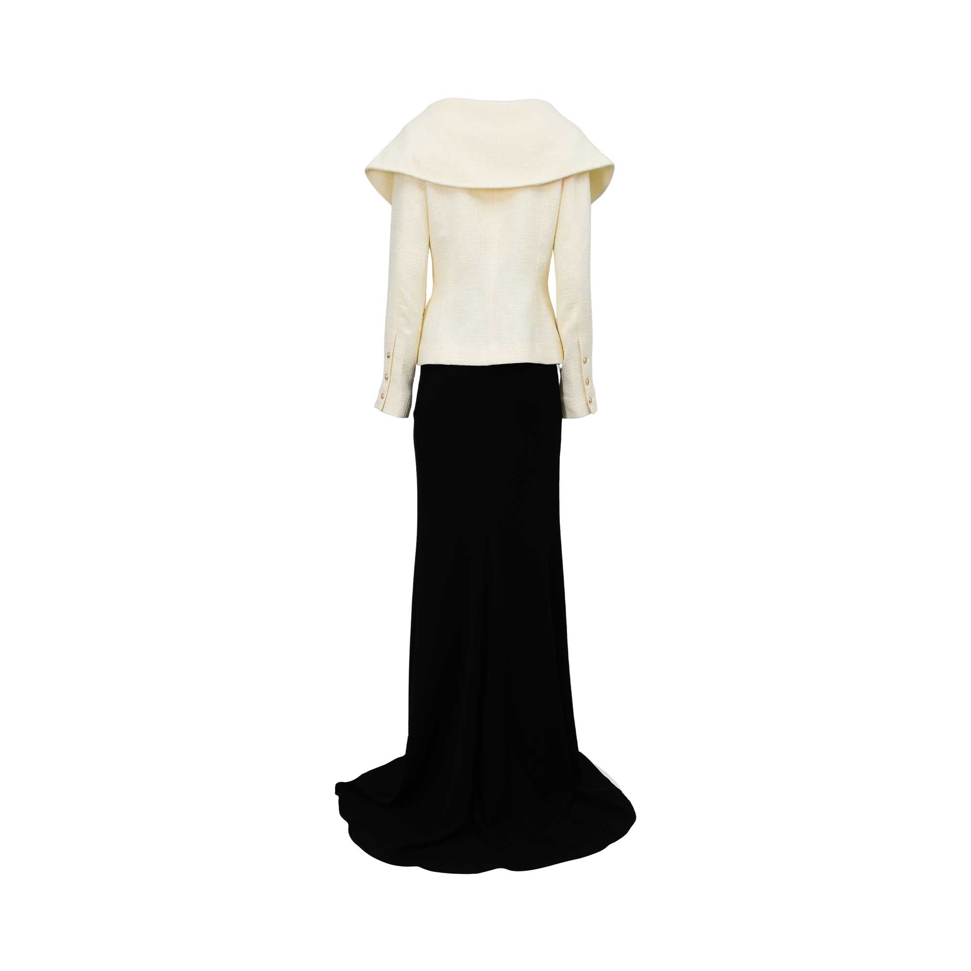 • Perfectly pairs with an ivory jacket featuring an oversized, draped collar