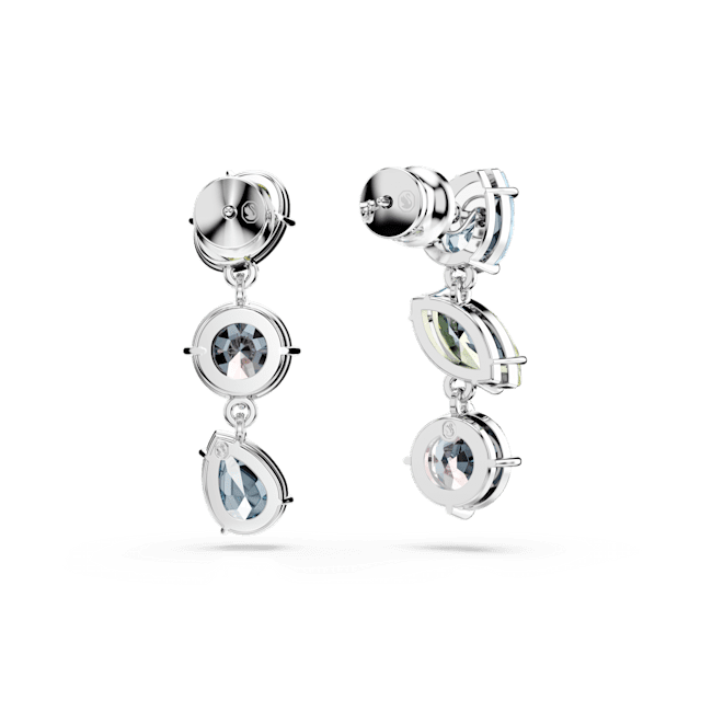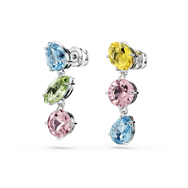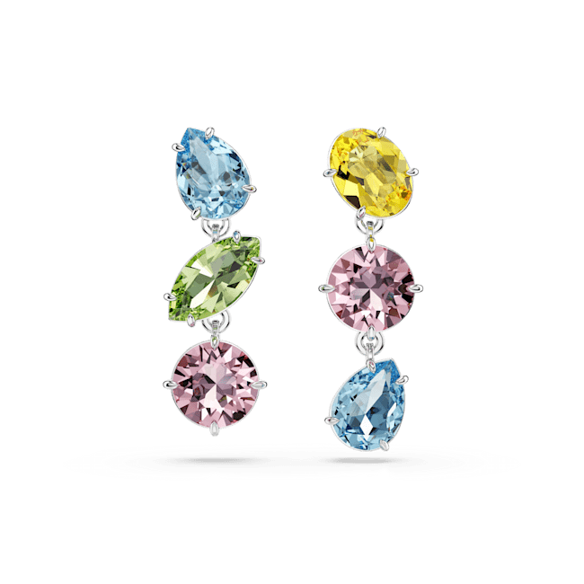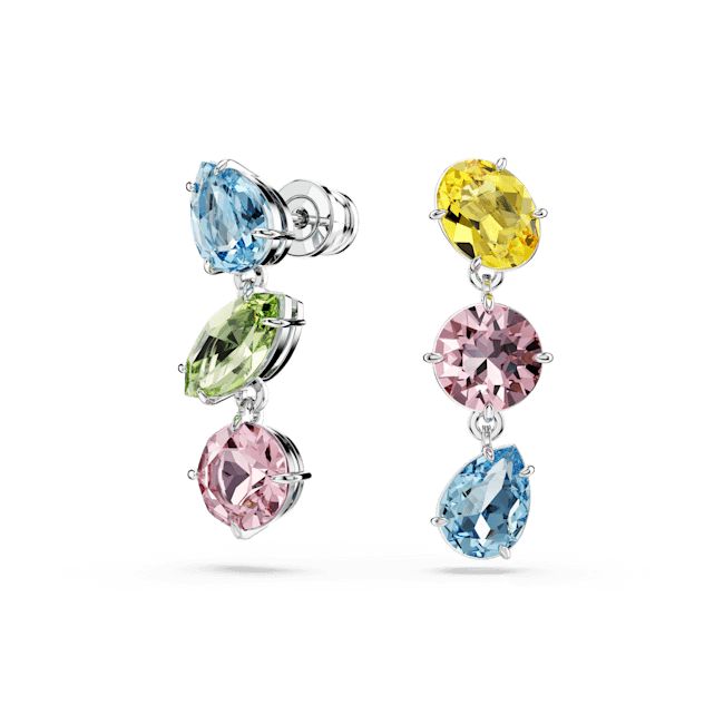 Swarovski Gema Drop Earrings Asymmetrical Design, Mixed cuts, Multicolored, Rhodium plated