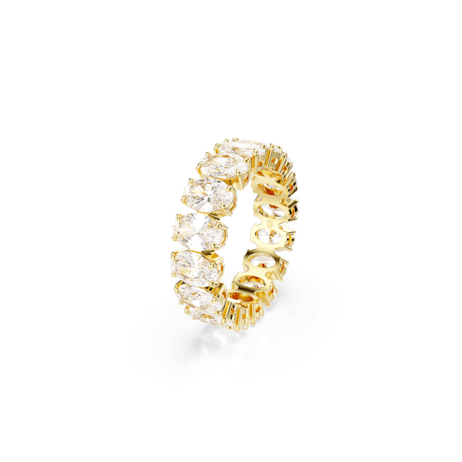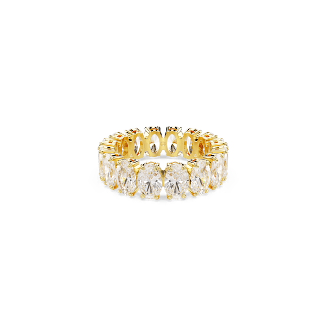 Swarovski Matrix Ring Oval Cut. White gold-tone plated, This Matrix ring features a whole circle of oval-cut Swarovski Zirconia, giving it a unique and sumptuous appearance. The stones are set in a polished prong setting that is gold-tone plated for a dazzling and brilliant appearance. When it comes to personal expression, make this ring one of your go-to favorites.