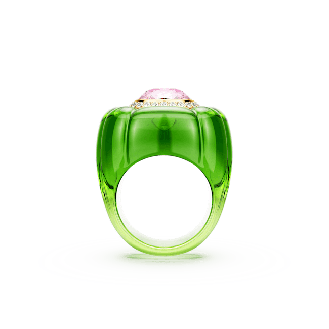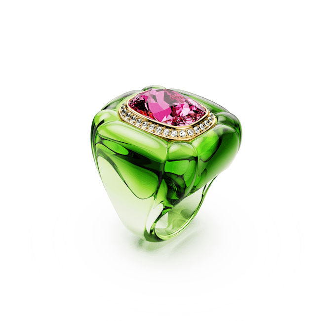 | Swarovski Dulcis cocktail ring, Cushion cut Pavé Multicolored, This cocktail ring, inspired by the excitement of the Pop Art movement, is a fun way to add color to your look. The green band is adorned with a pink cushion-cut crystal encircled by white pavé in a gold-plated frame. Wear it at any time for a brilliant pop of color, or combine it with other Dulcis cocktail rings to express your creativity. SPECIFICATIONS • Brand: Swarovski • Gender: Women • Collection: Dulcis • Material: Crystals, Gold-tone plated, Resin • Color: Multicolored • Country of Origin: 中国大陆地区 • Size recommendation: We recommend ordering one size up from your usual size • Manufacturer: SWAROVSKI Care & maintenance • Store your jewelry in the original packaging or a soft pouch to avoid scratches. • Avoid contact with water. • Remove jewelry before washing hands, swimming, and/or applying products (e.g. perfume, hairspray, soap, or lotion), as this could harm the metal and reduce the life of the plating, as well as cause discoloration and loss of crystal brilliance. • Avoid hard contact (i.e. knocking against objects) that can scratch or chip the crystal. |