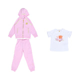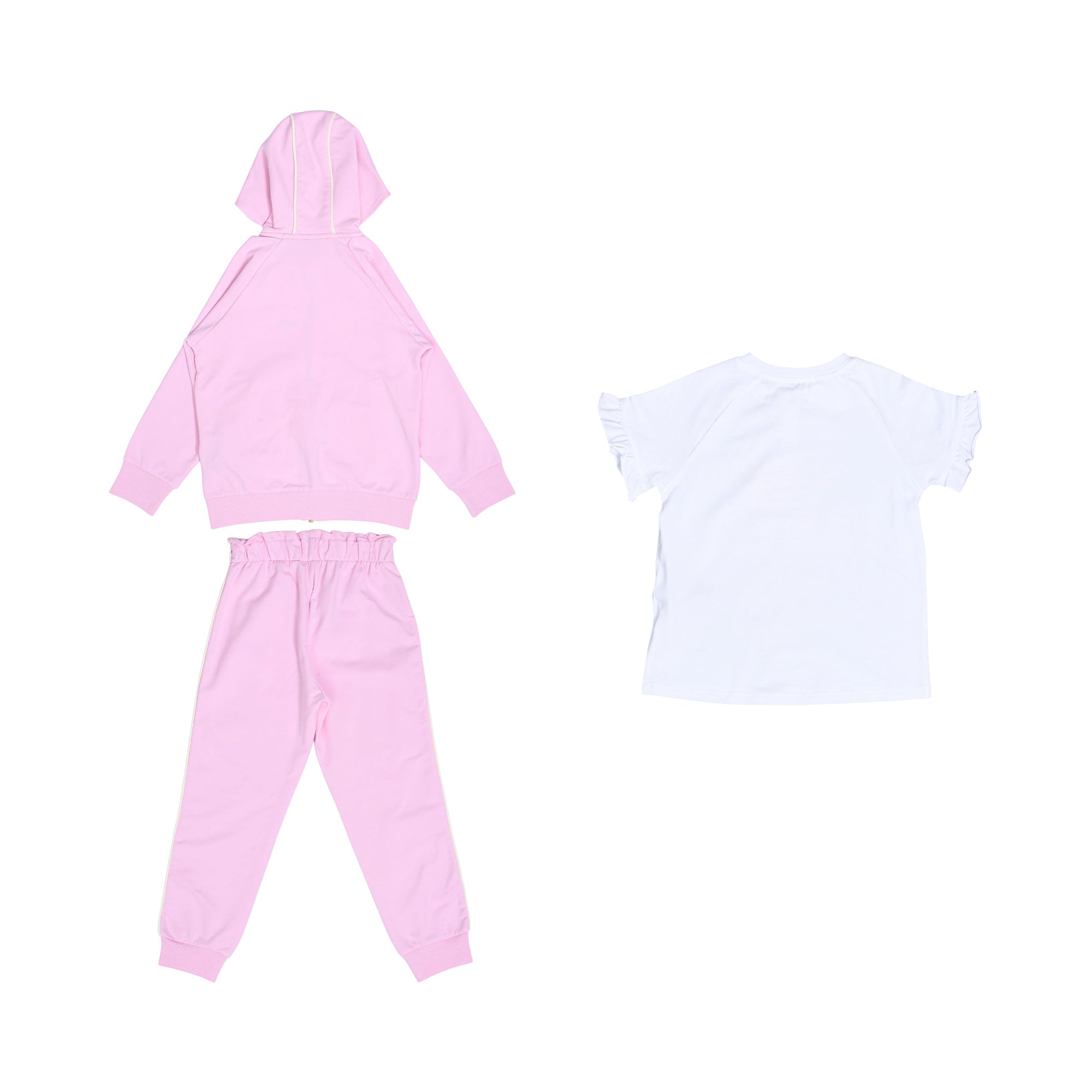 | The Escada Kids Girl's Pink Lady Jogging Suit is a charming and stylish ensemble, perfect for any young fashionista. The t-shirt features a classic crew neck and delightful ruffle short sleeves, adding a touch of playful elegance. An embroidered brand logo and a vibrant floral motif adorn the front, enhancing the shirt's feminine appeal. Complementing the t-shirt, the hooded sweatshirt offers both comfort and style, with its long sleeves, practical front zip fastening, and side pockets for convenience. The shoulder is accentuated with a repeated brand logo, adding a trendy and sporty touch. Completing the outfit, the trousers are designed with an elasticated waistband and cuffs for a snug fit, and they proudly display a brand logo, making this jogging suit a perfect blend of comfort, quality, and signature Escada style. SPECIFICATIONS • Brand: Escada Kids • Gender: Girl • Charming and Stylish Ensemble: Designed for young fashionistas, ensuring both elegance and trendiness. • T-shirt Details: Classic Crew Neck: Timeless silhouette for versatile styling. Ruffle Short Sleeves: Playful and feminine detail for extra flair. Embroidered Brand Logo & Vibrant Floral Motif: Front embellishments enhance the shirt’s chic appeal. Hooded Sweatshirt Features: Comfortable Fit: Long sleeves provide warmth and coverage. Front Zip Fastening: Easy to wear and remove. Side Pockets: Practical for carrying small essentials. Shoulder Logo Accent: Repeated brand logo for a trendy, sporty vibe. • Coordinating Trousers: Elasticated Waistband & Cuffs: Ensures a snug, comfortable fit. Brand Logo Display: Signature Escada branding for added style. • Perfect Blend of Comfort, Quality, and Fashion: Embodies signature • Escada craftsmanship and attention to detail. • Ideal for Casual and Stylish Wear: Suitable for various occasions, from playdates to family outings. • Unified, Polished Look: Pieces complement each other for a cohesive appearance. • Washing Instruction: Machine wash 30*c • Do not dry clean • Do not tumble dry • Do not bleach |