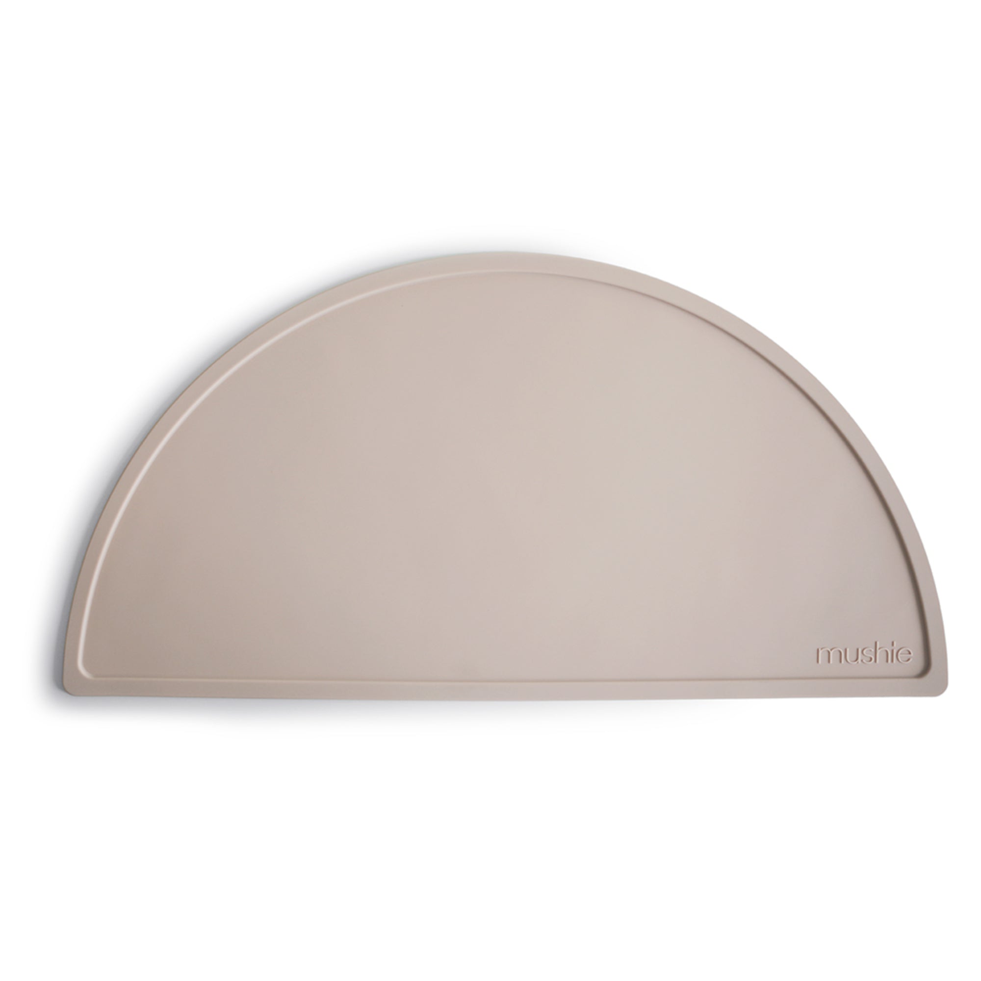 The Mushie Silicone Placemat Shifting Sand is a practical and stylish addition to any mealtime. This half-moon shaped placemat is made from high-quality silicone, making it durable, non-slip, and easy to clean. Its neutral color and minimalist design complement any table setting, while its raised edges help contain spills and messes.