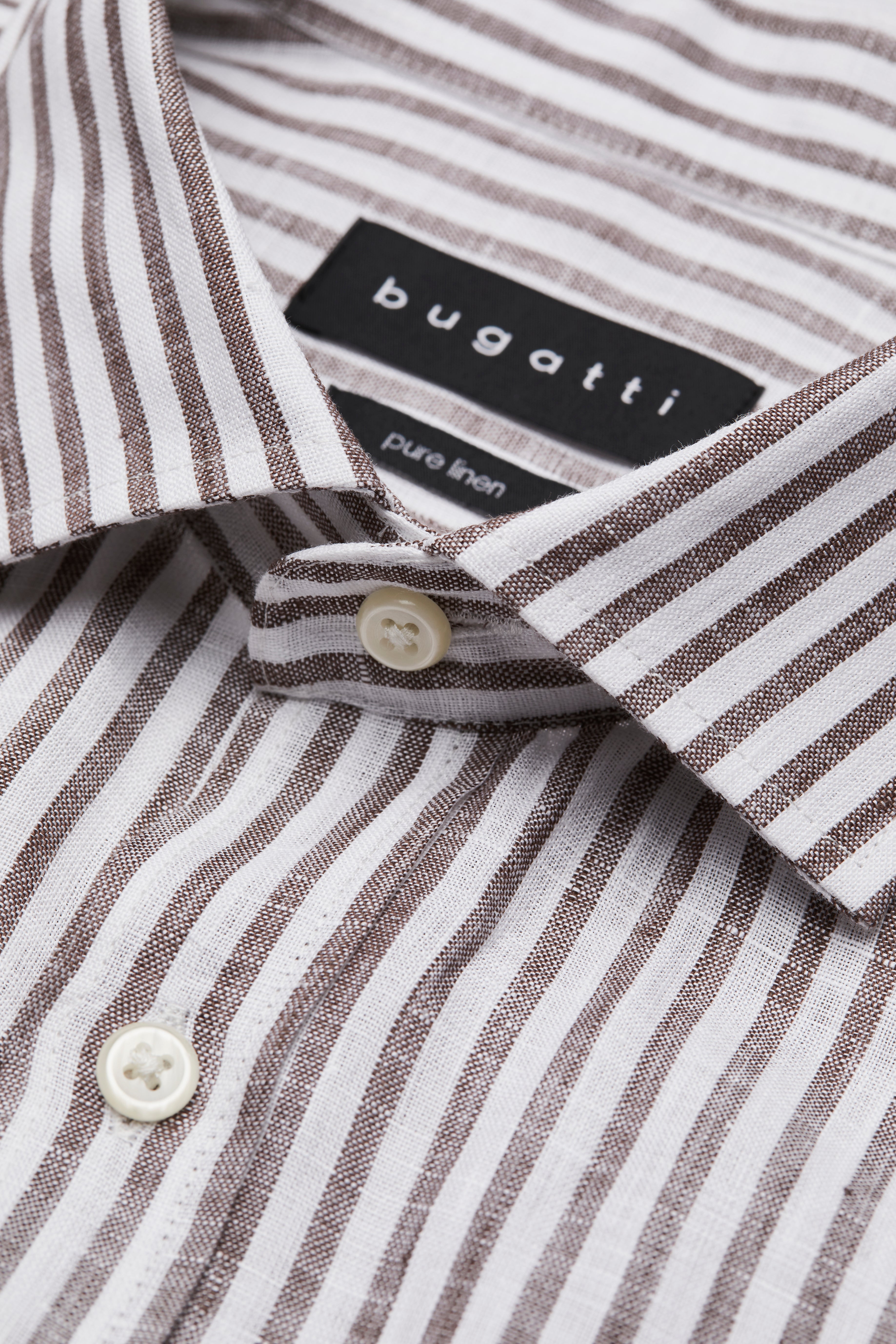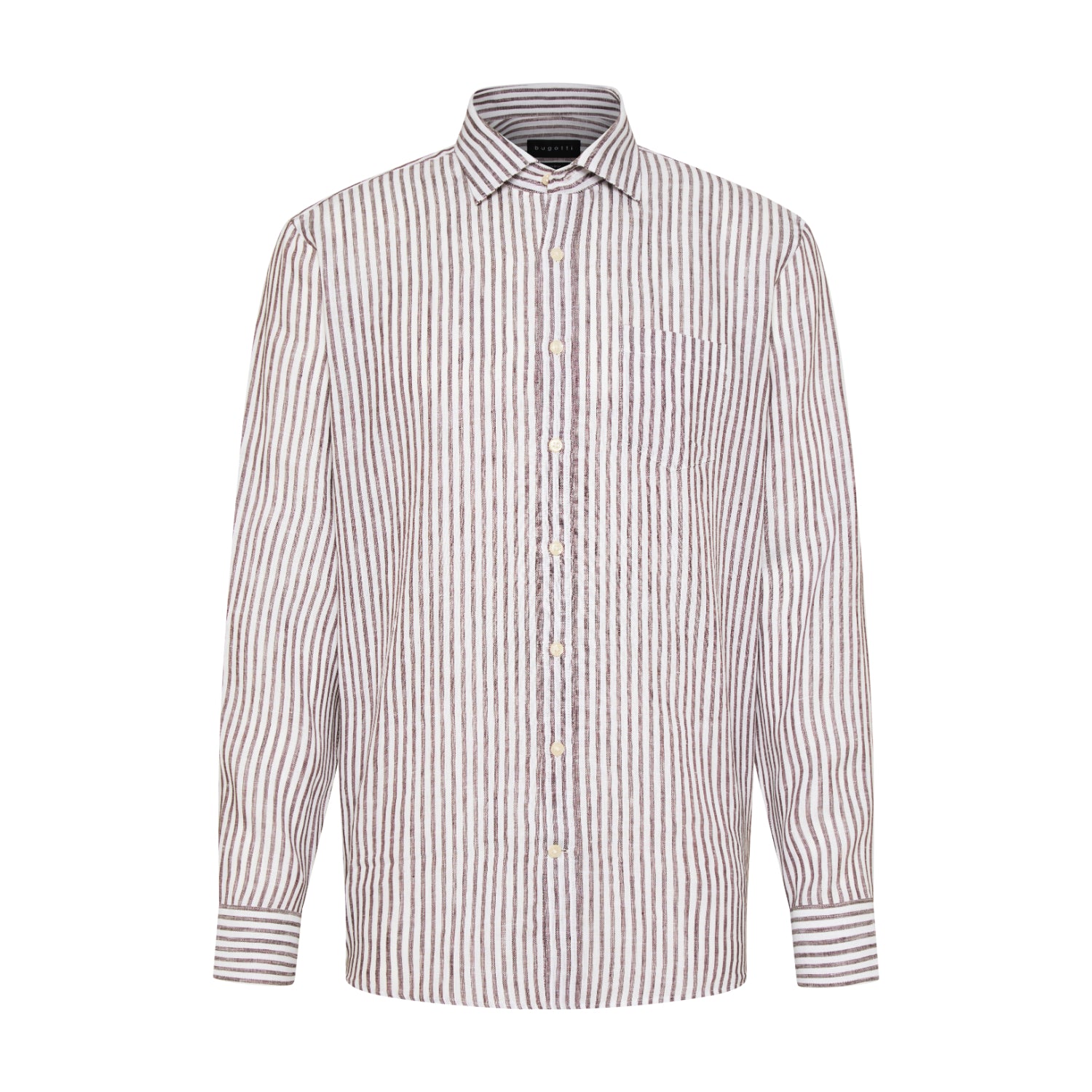 Bugatti Men's White and Brown Striped Long-Sleeve Linen Shirt