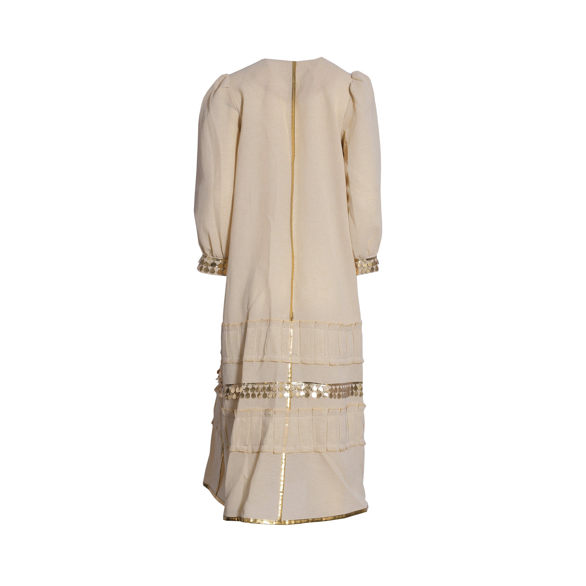 This Fahm Women’s Abaya is a timeless addition to your wardrobe. Constructed with a round neck and short slit, this abaya features long sleeves and a flared fit with pleats for added detail. The dress is further adorned with gold lace detailing across the length of the dress for added style and sophistication. The edges are finished off with trim made from a golden pipeline as well as the cuffs to create a sustainable look. This piece is made from a premium fabric to ensure your style and comfort. Ideal for outing or evening occasions, you can wear this free size abaya to show off your chic and classy style. SPECIFICATIONS