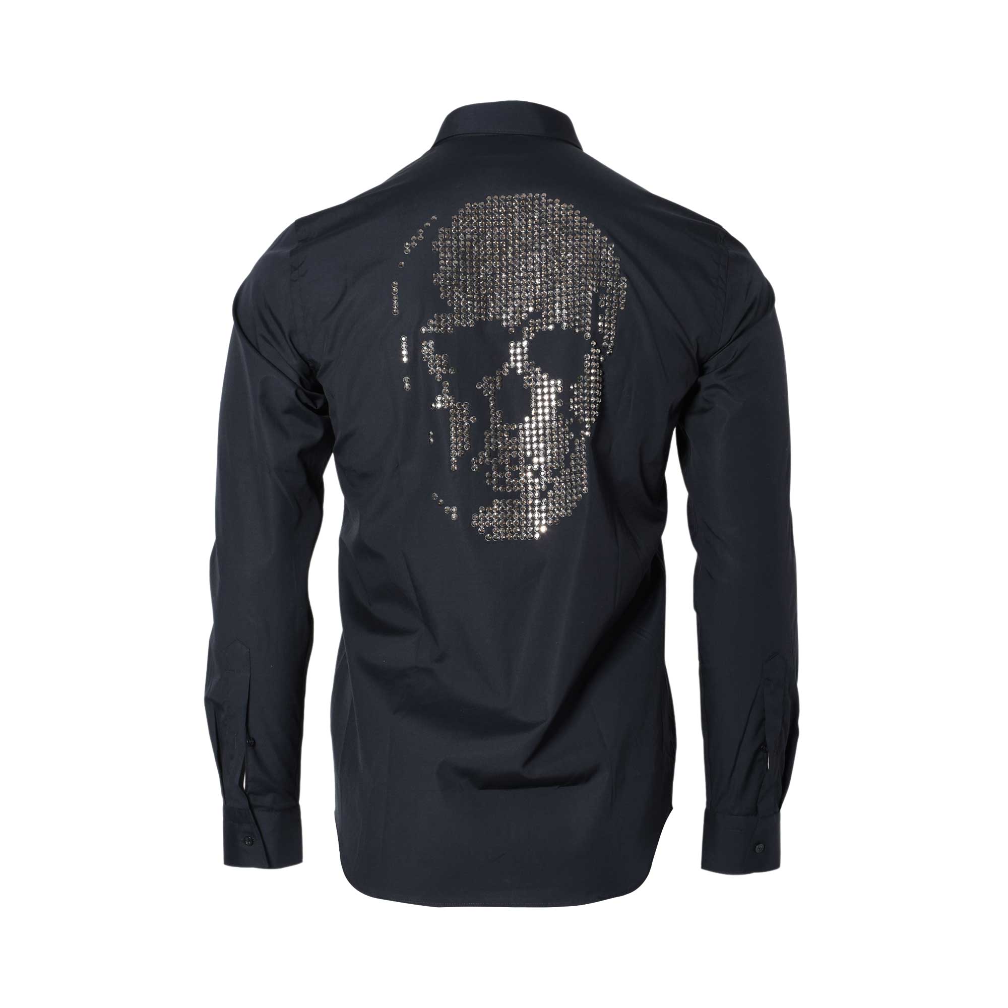 - Philipp Plein Men's Black Sugar Daddy Cut Crystal Skull Shirt.