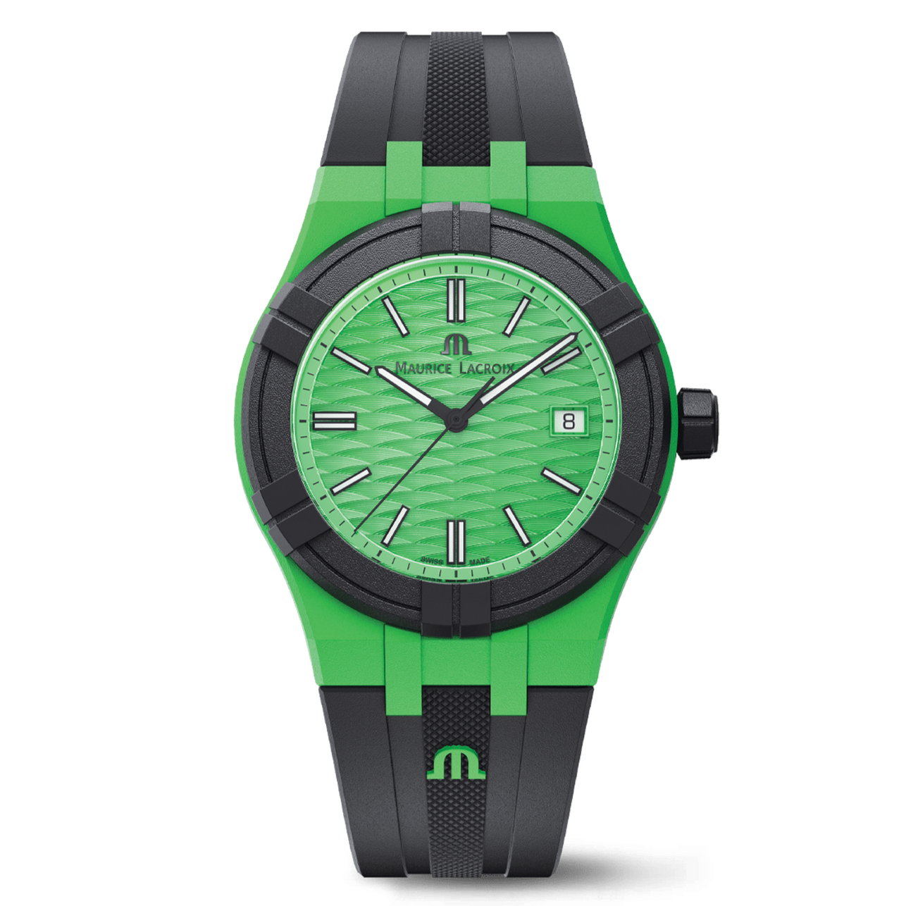 • BRACELET/STRAP: Black, rubber strap, featuring the Maurice Lacroix 'm' logo