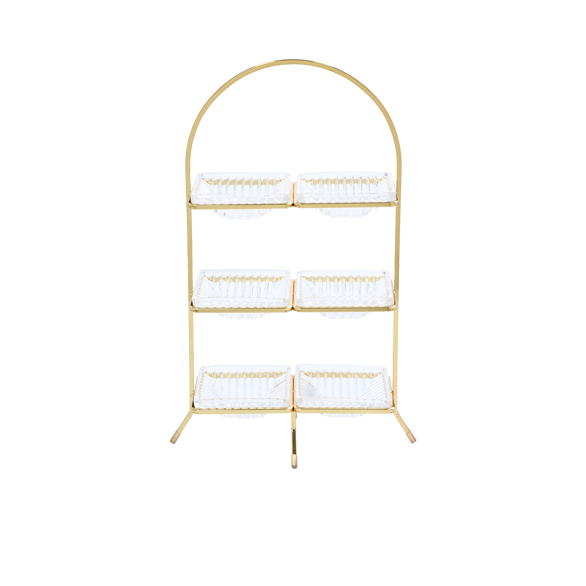 '- Ele 4PM Luxury Gold Stand Tray,6 Grids,3 Tiers, Medium 25.50x13.50x41 Cm.