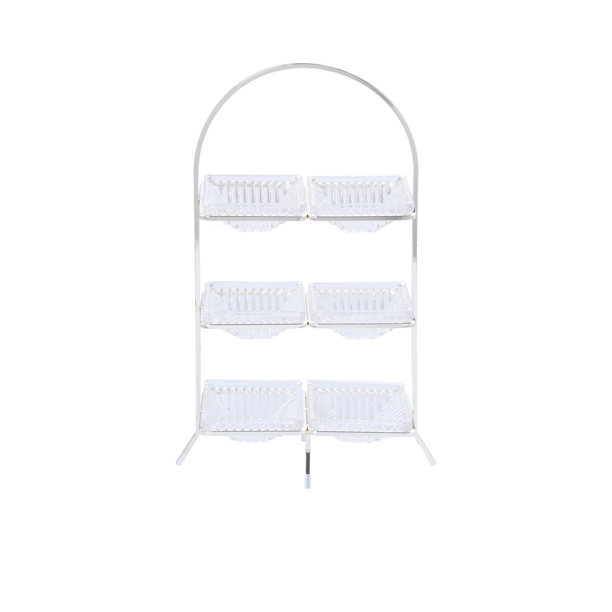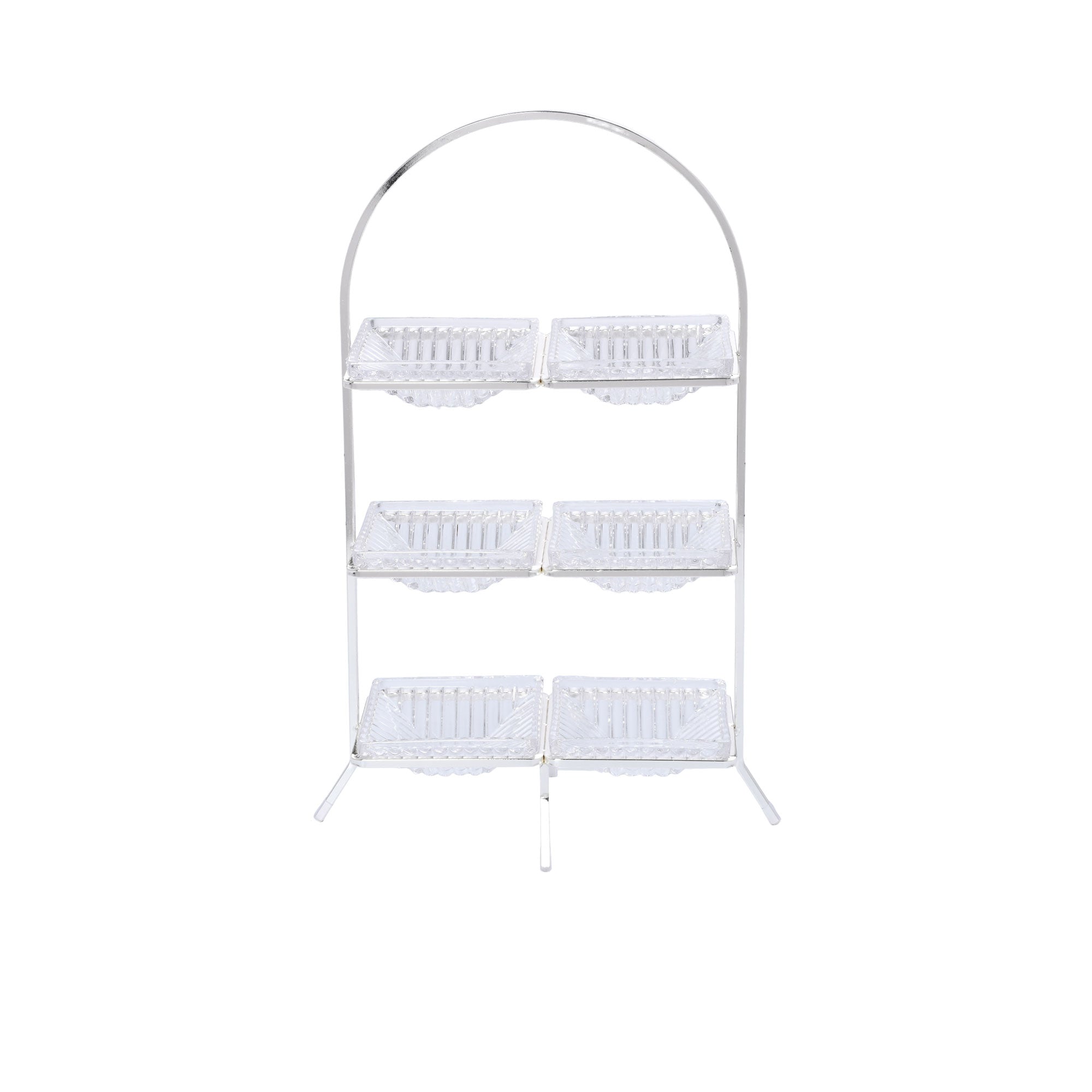 '- Ele 4PM Luxury Silver Stand Tray,6 Grids,3 Tiers, Medium 25.50x13.50x41 Cm.