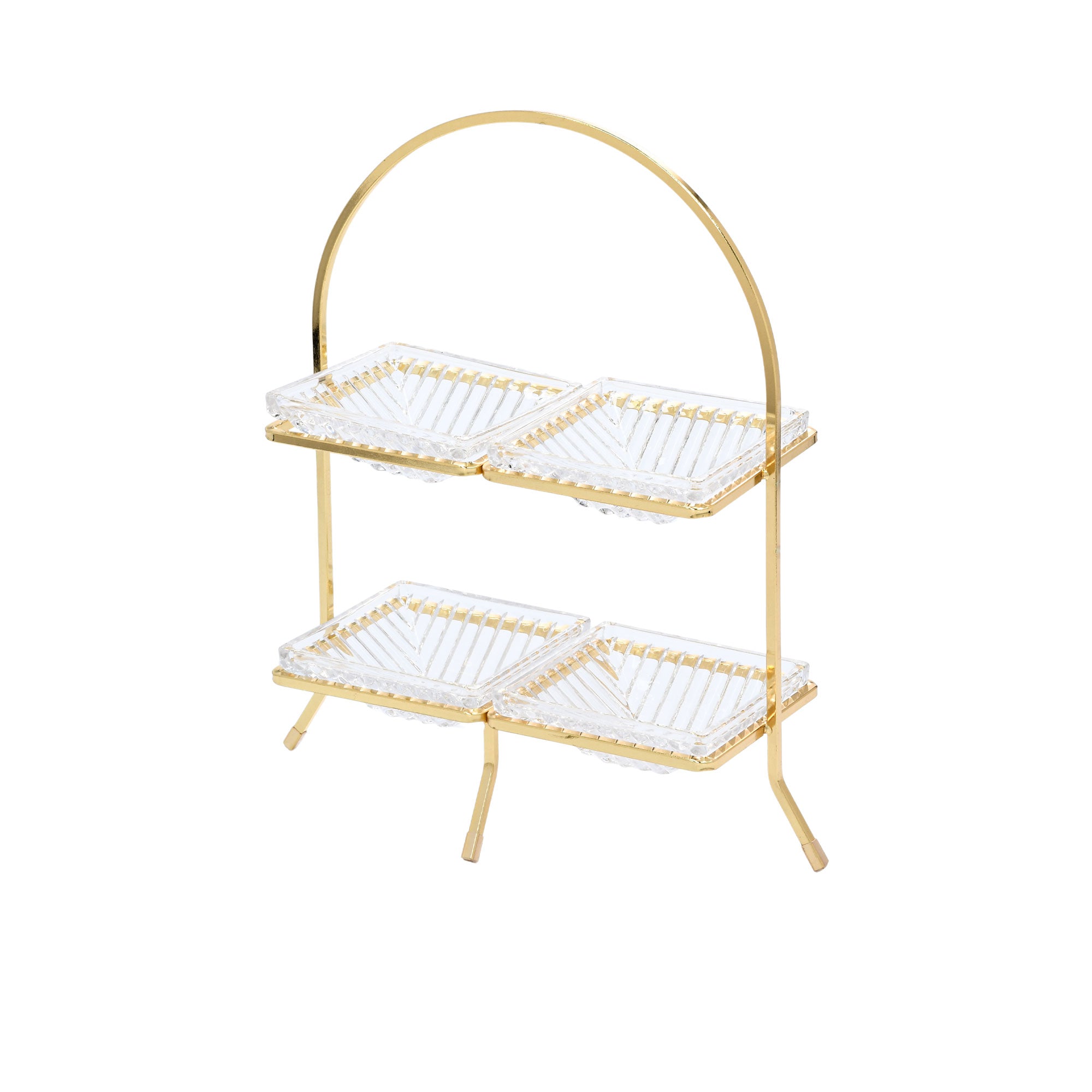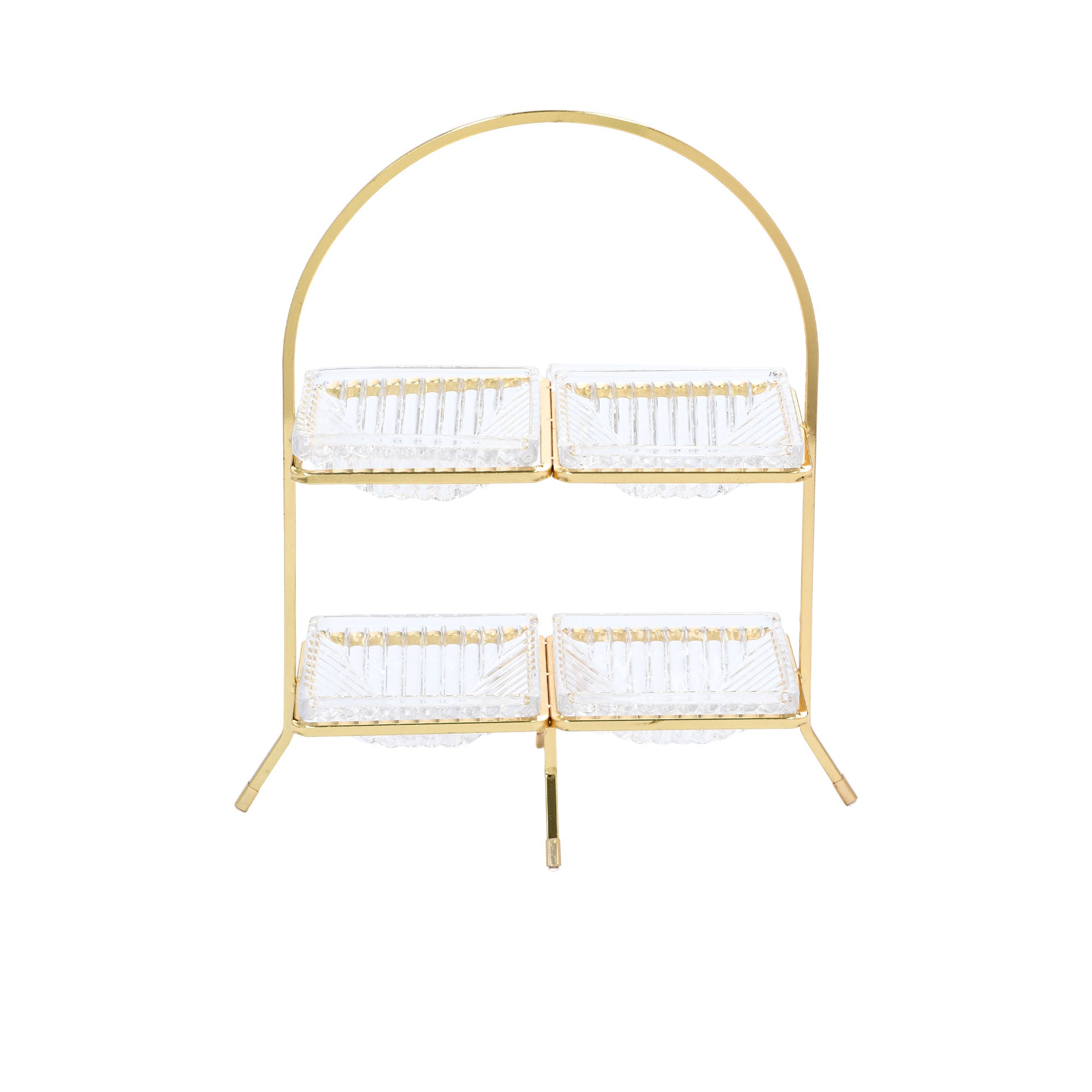 - Ele 4PM Luxury Gold Stand Tray,4 Grids,2 Tiers, Medium 31.50x16.50x36 Cm.