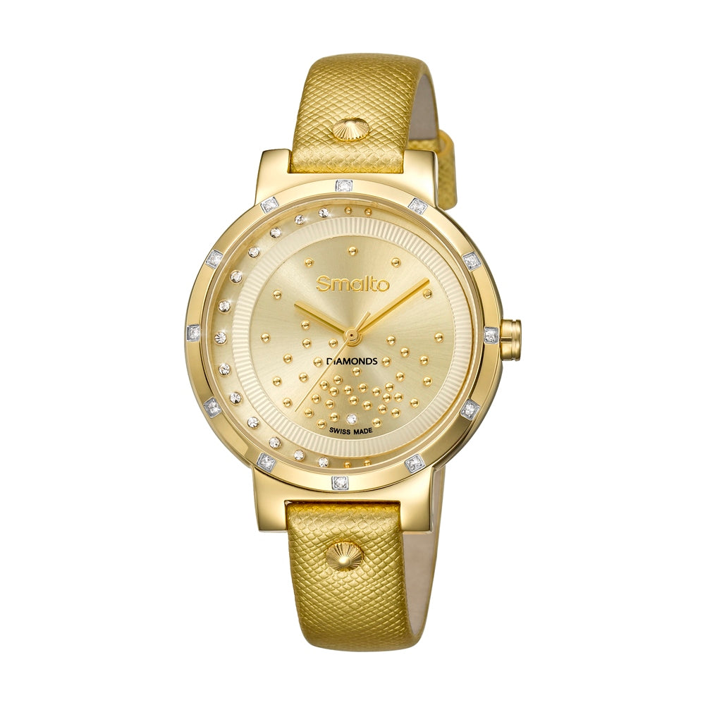 ساعة سمالتو نسائية ذهبية اللون مع حزام ذهبي من الجلد
