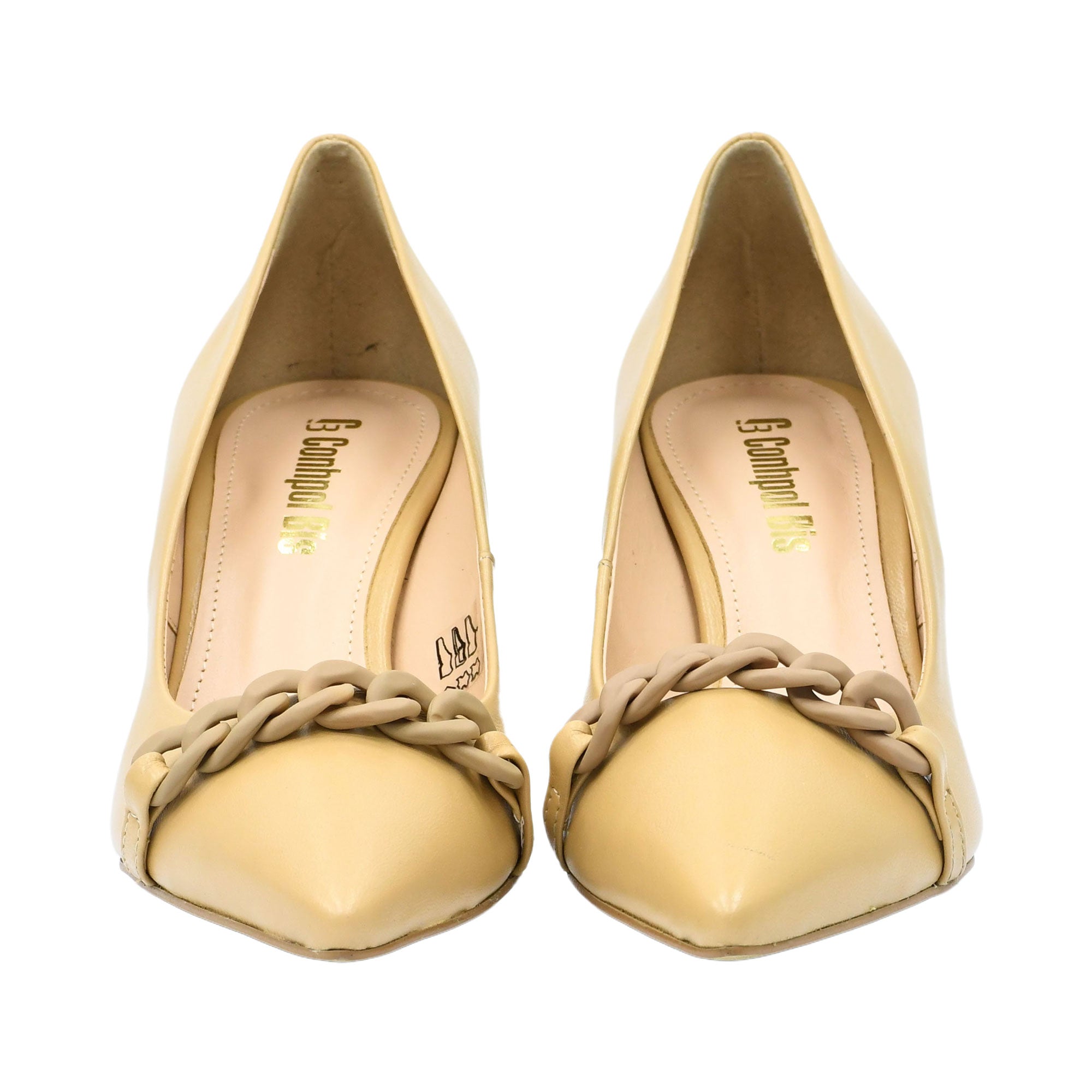 Conhpol Women's Beige Shoes With Heels are a stylish and versatile option for any wardrobe. They feature a beautiful beige color that can match a variety of outfits and styles. The shoes have a classic and sophisticated design with a pointed toe and cone heel, giving them a touch of elegance and femininity. The shoes are made from high-quality materials, including a leather lining that ensures comfort and durability. This also adds to the overall polished look of the shoes. The heel is covered, adding a sleek and streamlined appearance. The cone heel provides stability and makes the shoes comfortable to walk in. One of the main advantages of these shoes is the rubber sole, which offers excellent traction and grip on various surfaces. This makes them suitable for both indoor and outdoor use, making them a practical and versatile option for everyday wear. Conhpol Women's Beige Shoes With Heels are a must-have in any woman's shoe collection. They offer both style and functionality, making them a great choice for any occasion. Whether you're dressing up for a special event or need a chic and comfortable shoe for work, these shoes will surely elevate your outfit. SPECIFICATIONS