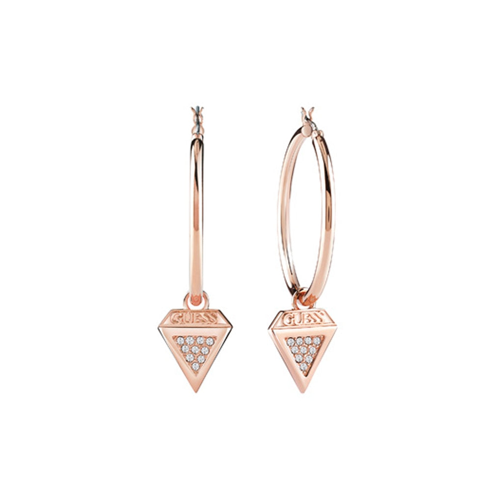 أقراط جيس نسائية باللون الذهبي الوردي مصممة على شكل حلقة مرصعة بأحجار مع إسم العلامة جيس على الجهة السفلية