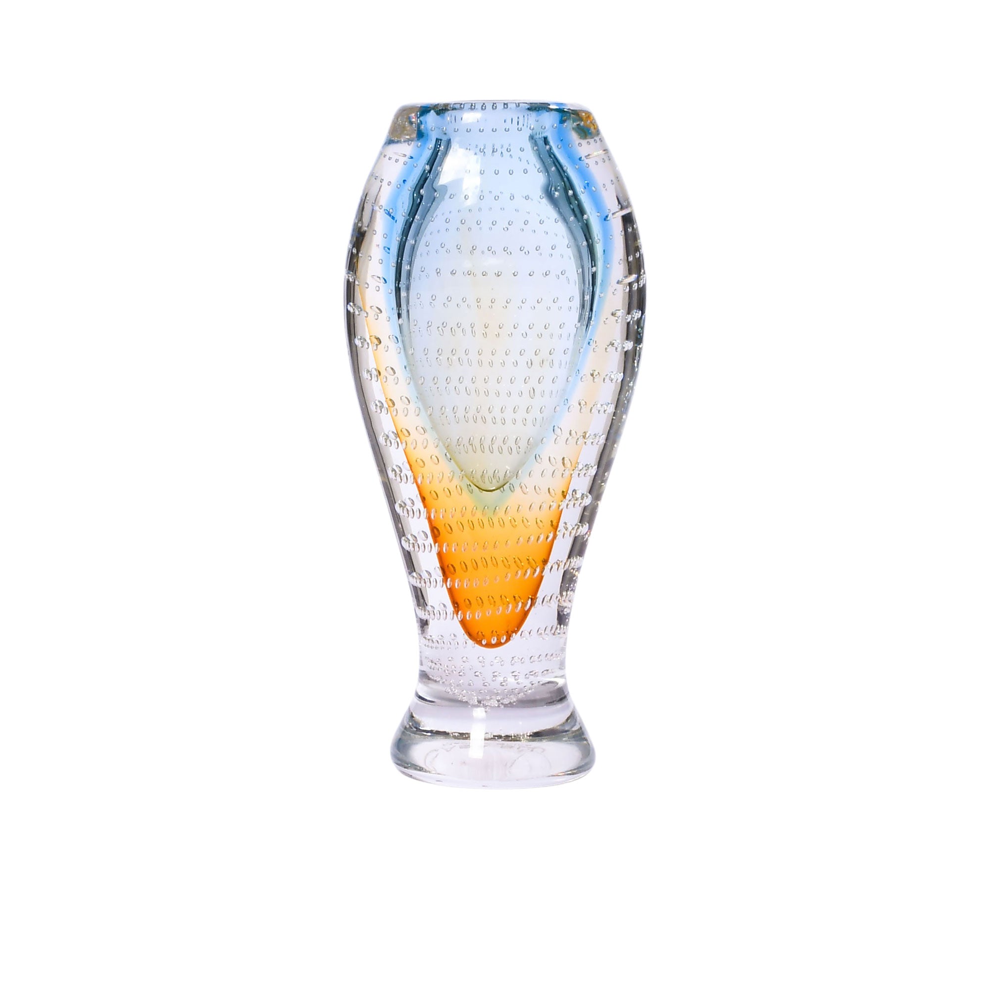 Casa Blu Sea Blue With Amber Small Ball Crystal Vase