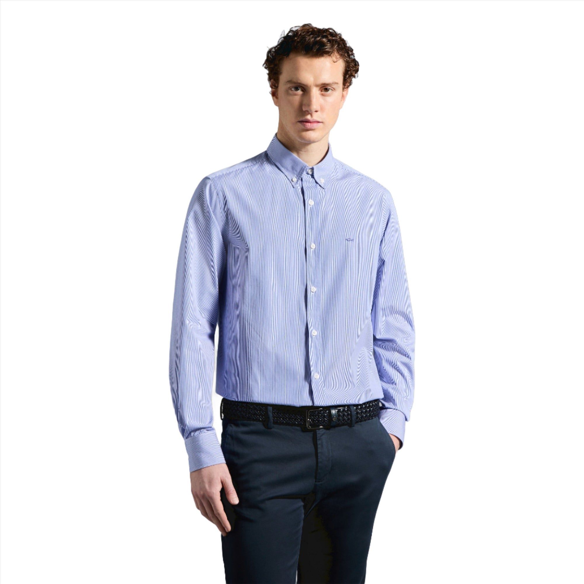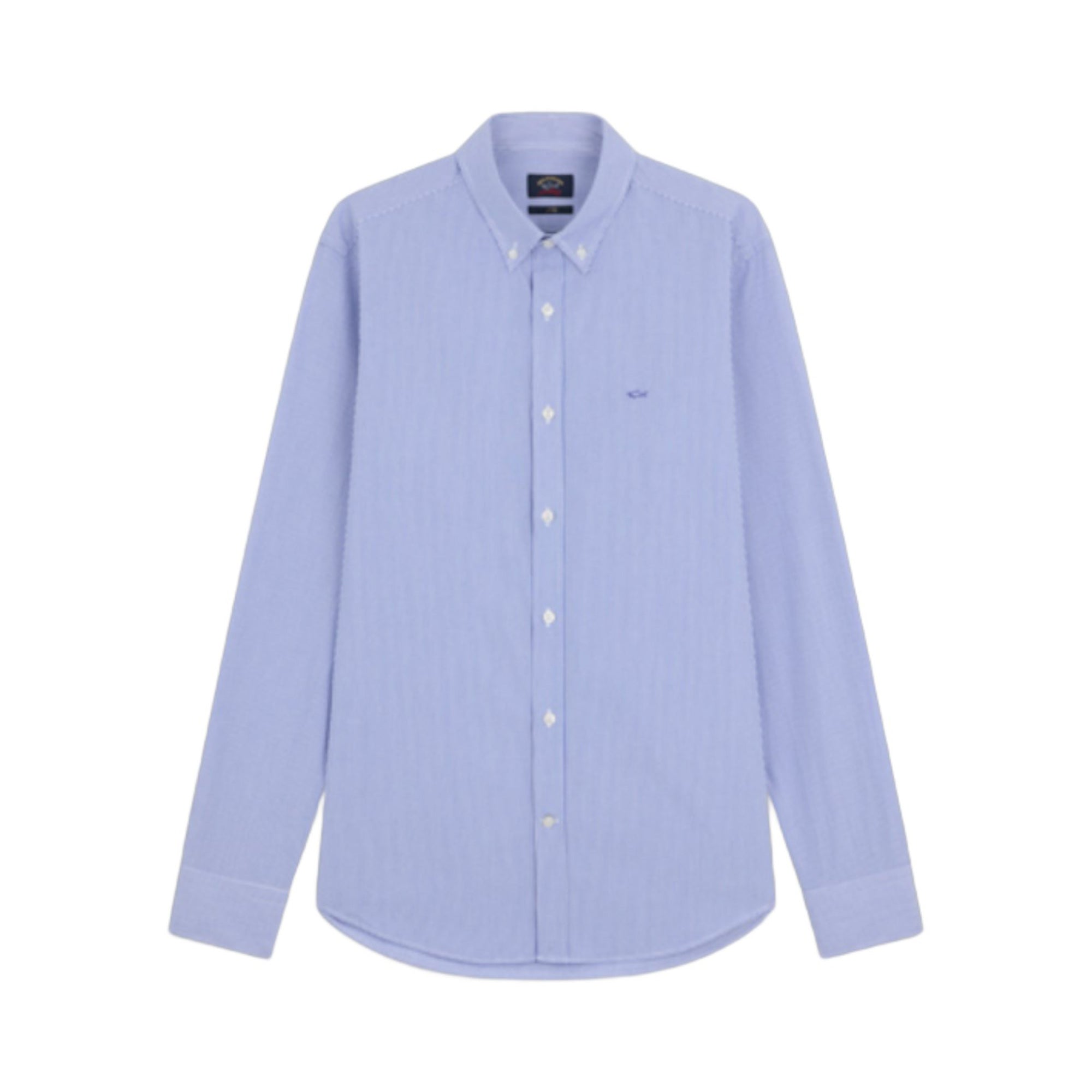 Paul & Shark Men's Cotton Poplin Light Blue Stripes On White Shirt