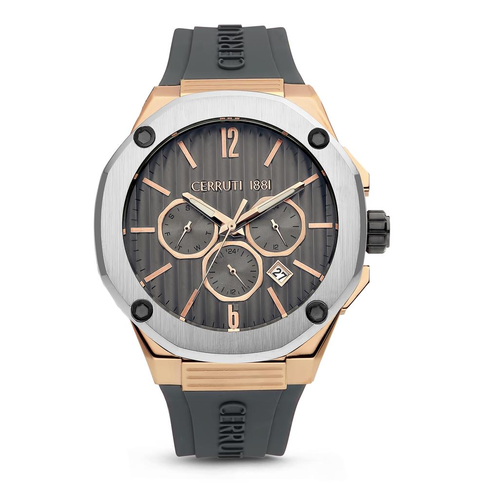 ساعة شيروتي رجالي من الستيل مع كرونوغراف لون روز غولد ميناء رمادي مع مؤشر تاريخ وربر لون رمادي