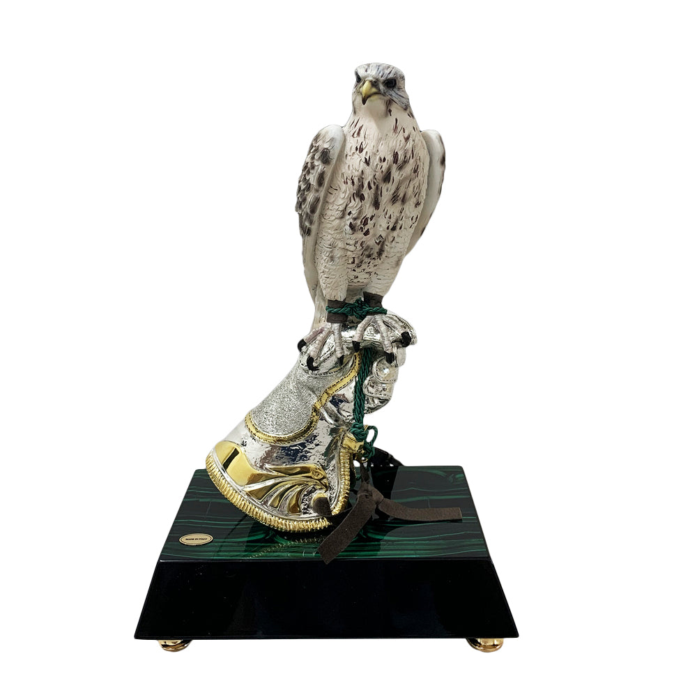 صقر مطلي مع أجنحة مغلقة على كف يد فضي