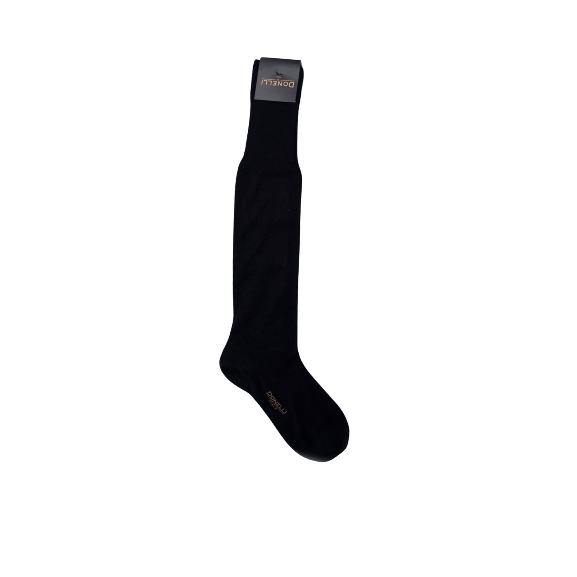 جوارب دونالي اللون ازرق ، جوارب طويله للركبه ذات لون واحد، تناسب تماما الاستخدام للعمل أو الترفيه ، مصنوعة من قطن ناعم 100٪ تتميزالجوارب بأساور محكمه ومريحه ومضاده للتجاعيد . صنع في ايطاليا مقاس 10
