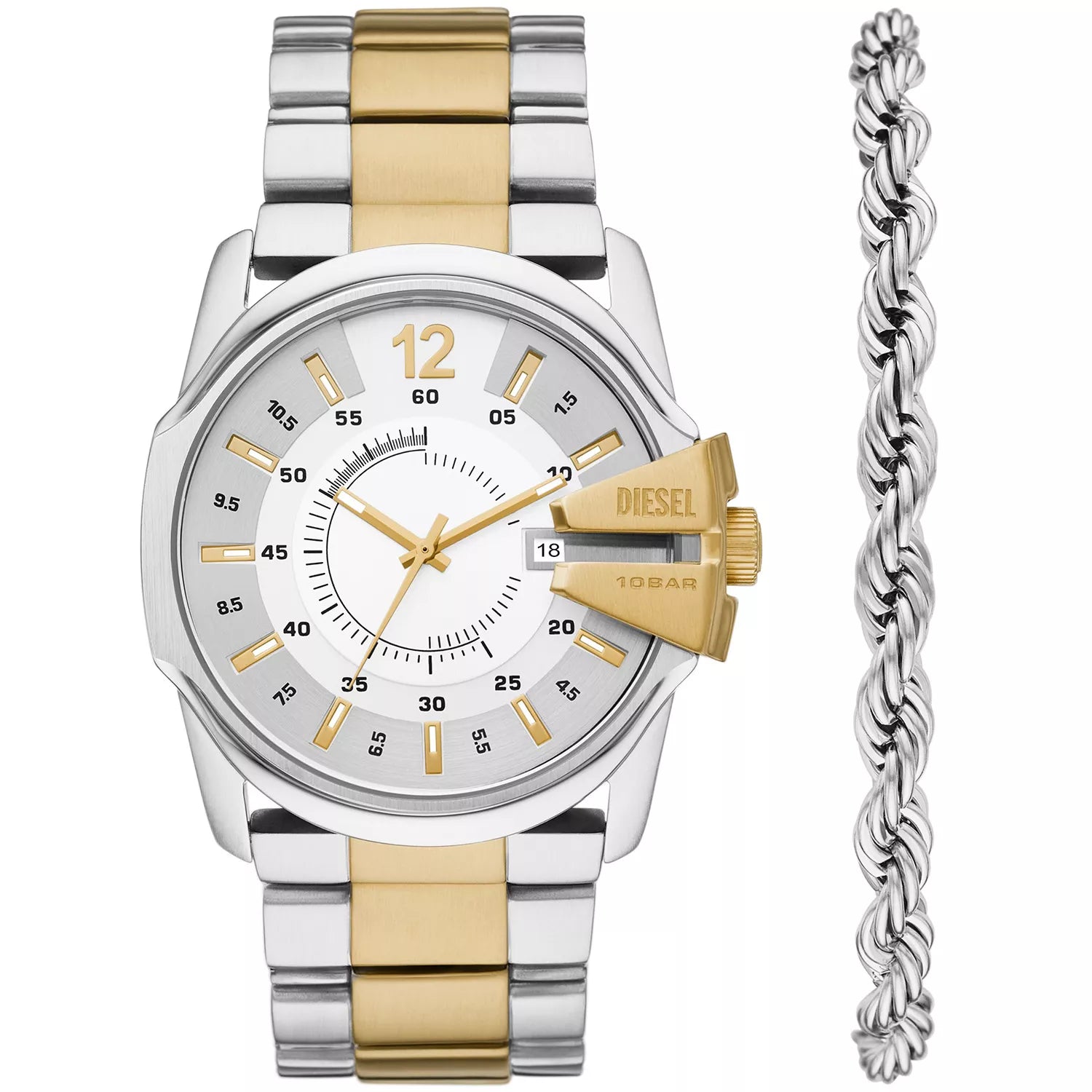 Diesel Master Chief Three-Hand Date Two-Tone Stainless Steel Watch and Stainless Steel Bracelet Set