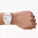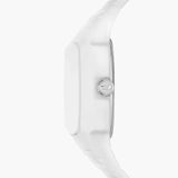 Bold and White: The striking white silicone strap and unique mixed case material give this watch a modern and sophisticated look that complements any outfit.