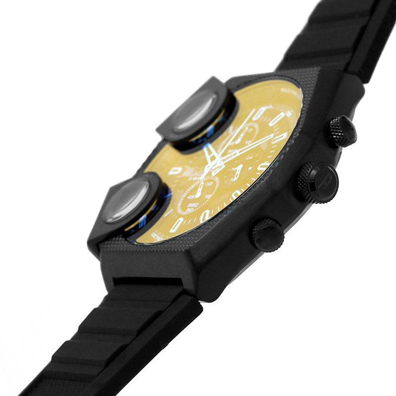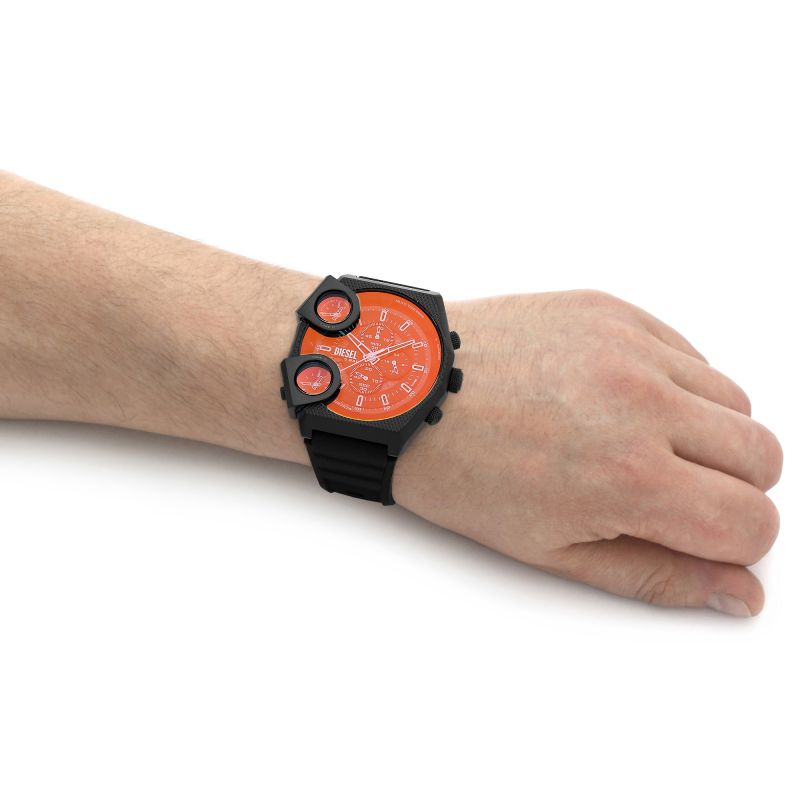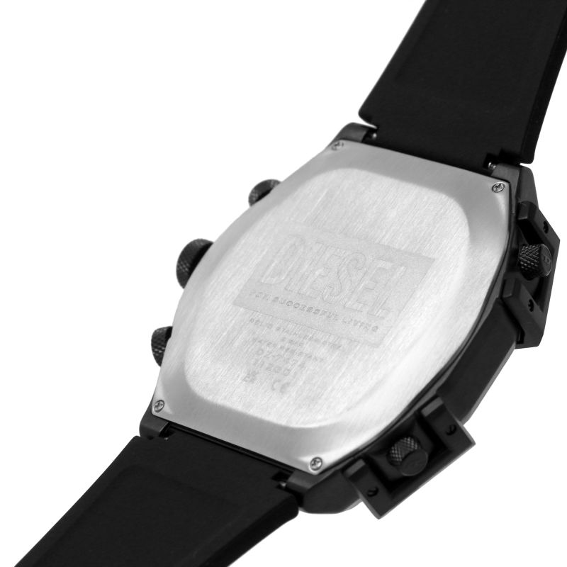 | Brand | Diesel | Analogue/Digital | Analogue | Case depth approx. | 51.00mm | Primary Material | Stainless Steel | Case Shape | Rectangle | Case width approx. | 51.00mm | Clasp type | Strap buckle | Dial Colour | Black | Gender | Gents | Glass | Mineral | Model Collection | Sideshow | Model Name | Cliffhanger | Movement | Quartz | Strap colour | Black | Strap Type | Plastic/Resin Strap | Water Resistance | 30 metres | Weight (g) | 150.00 | BARCODE | 4064092189766 | Guarantee | 24 Years |