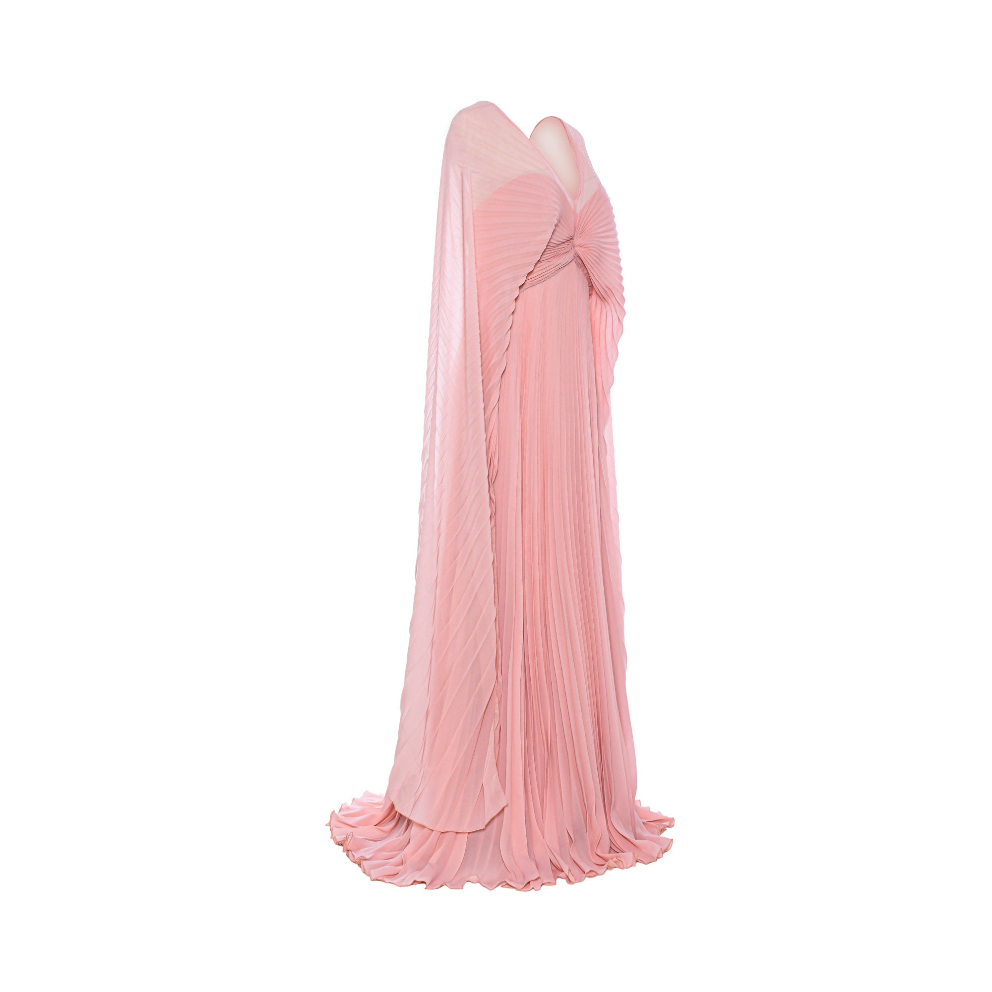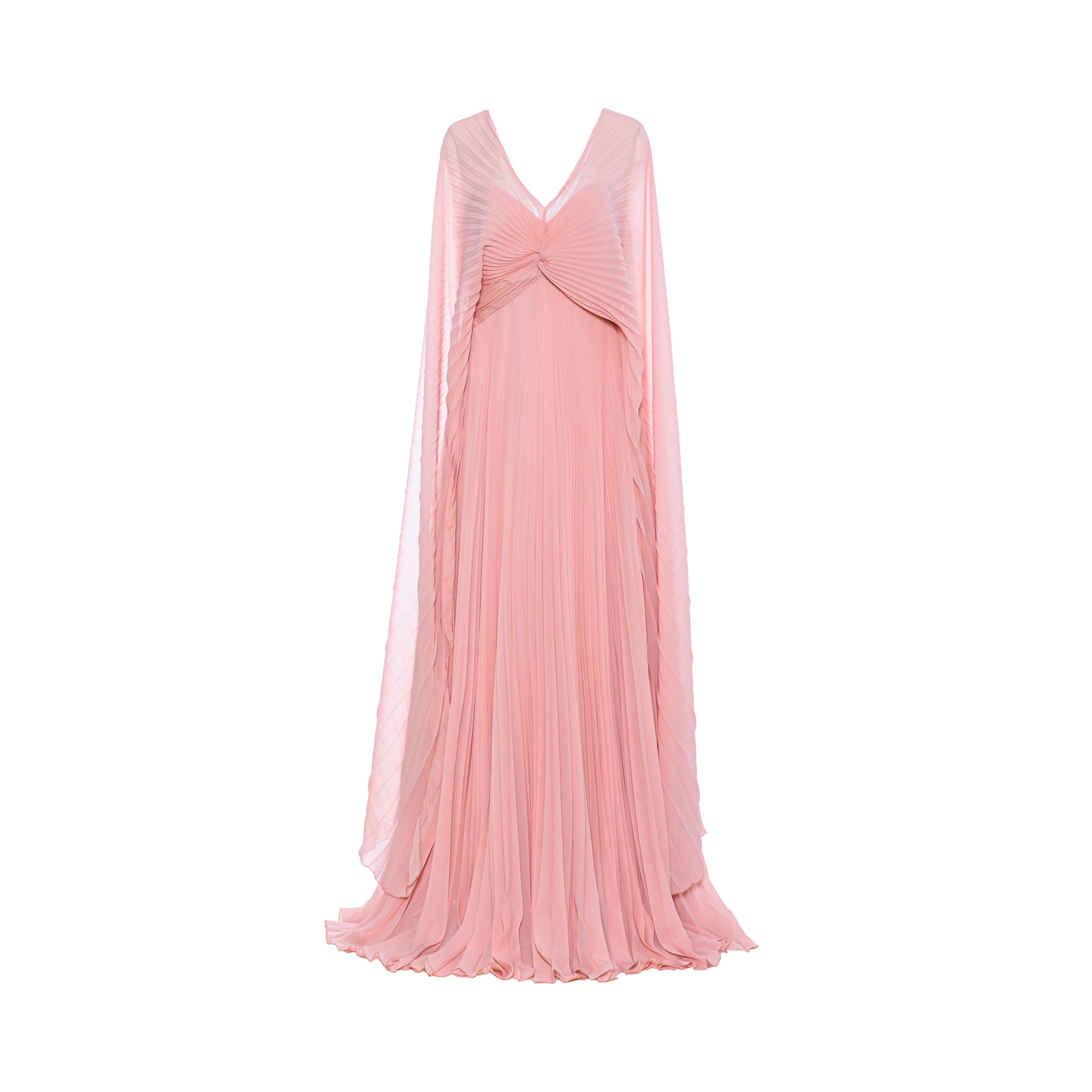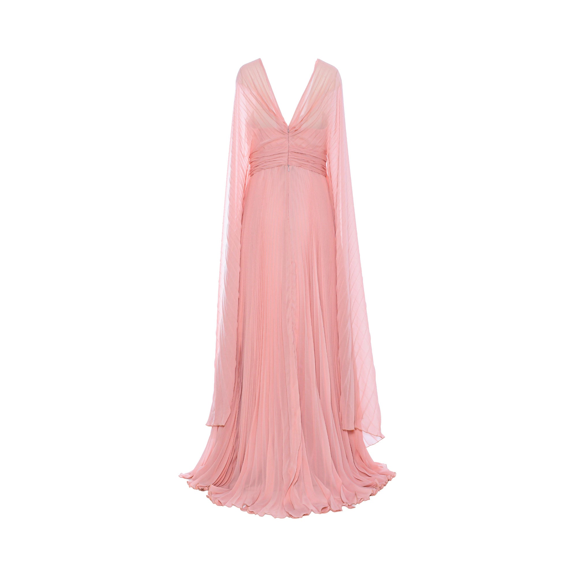 The Gemy Maalouf Women’s Long Dress is truly one of a kind. This gorgeous frock features a V-neckline with a fully pleated chiffon fabric that is both lightweight and comfortable. The dress has a flared design with draping details to give it an ultra-feminine feel. The long bell sleeves and midi length make this dress perfect for any special occasion. The bold colors have a sophisticated, yet playful attitude, adding to the overall chicness of the ensemble. The long, draping skirt adds a modern take to the classic beauty of this piece, making it suitable for both a formal event or a casual gathering. With its flattering design, this dress will have you feeling beautiful and trendy no matter where you go. SPECIFICATIONS