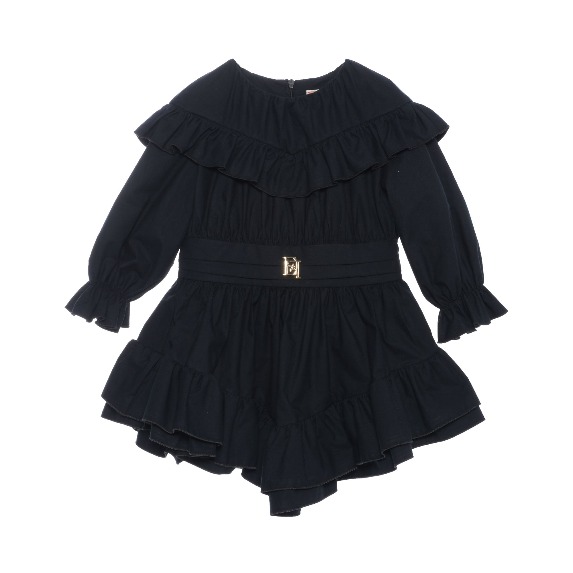 The Elisabetta Franchi Kids Girls Black Dress is the perfect choice for occasions that call for an elegant and sophisticated look. This stylish dress is crafted from lightweight cotton and features a timeless black design. The dress also features ruffled detailing, a belted waist that adds a modern touch, and a logo plaque on the chest for a decorative finish. The dress is finished with a round neck, concealed rear zip fastening, and long sleeves for a comfortable and versatile wear. The Elisabetta Franchi Kids Girls Black Dress is sure to make an impression when she steps out for any special occasion. SPECIFICATIONS
