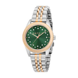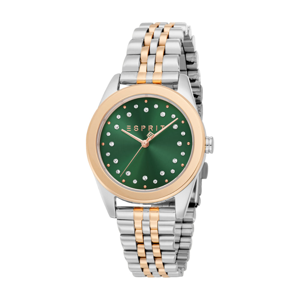 ESPRIT Women's Two Tone Silver & Rose Gold Color Watch with Dark Green Dial and Metal Bracelet