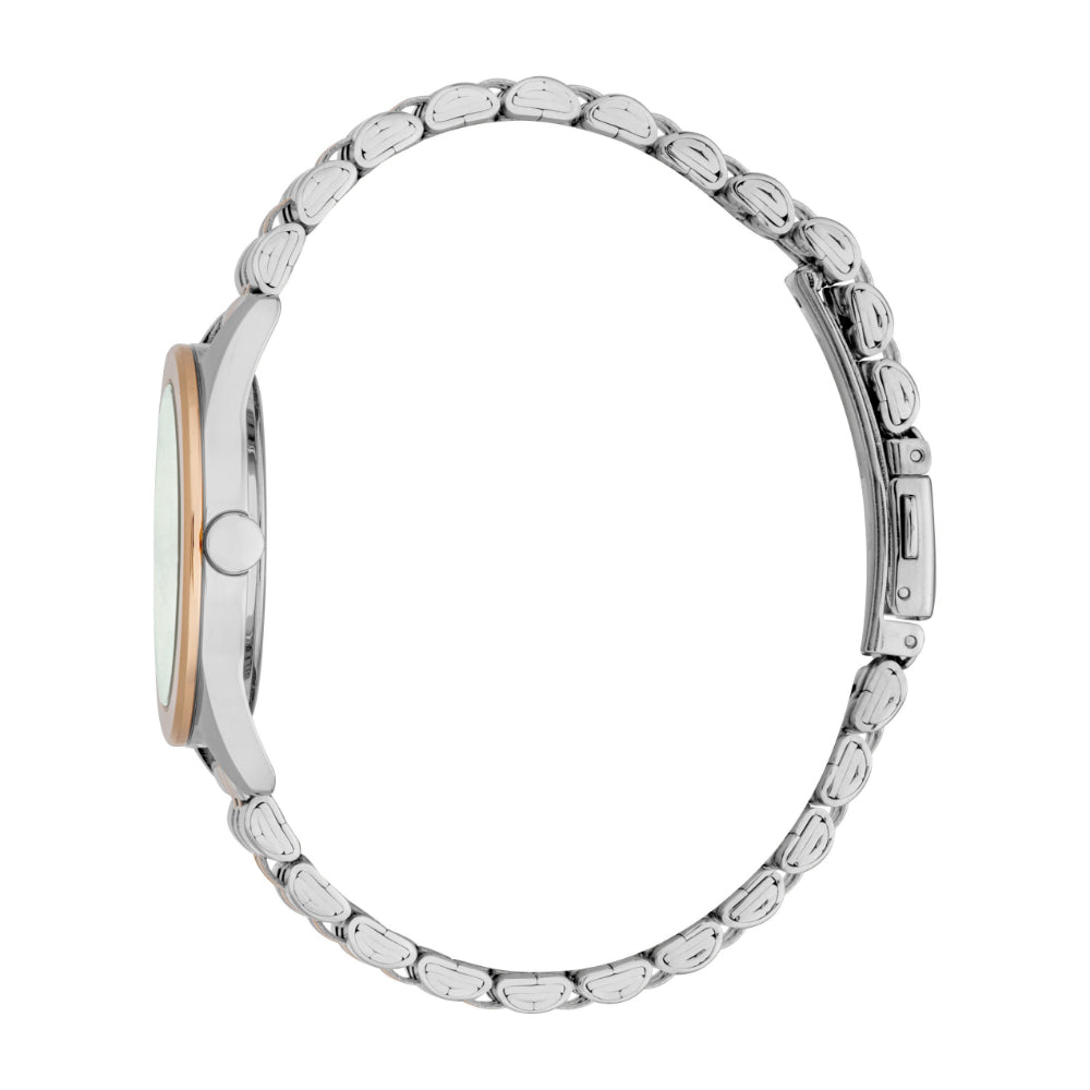 | This ESPRIT women's watch is an elegant way to elevate your style. The two-tone silver and rose gold color case with a Dark green dial and metal bracelet are striking and sophisticated. The Dark green color dial is eye-catching and will draw attention with its 3 hands. The 5 ATM water resistance ensures the watch will stand up to the elements and last a long time. Whether you are dressed up or down, this watch is the perfect accessory to complete any outfit. With its timeless style and classic design, this ESPRIT watch will be the perfect addition to any wardrobe. SPECIFICATIONS: