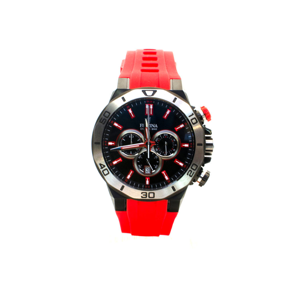 ساعة فيستينا كرونوبايك ٢٠١٩ مع مينا سوداءو حزام احمر من المطاط